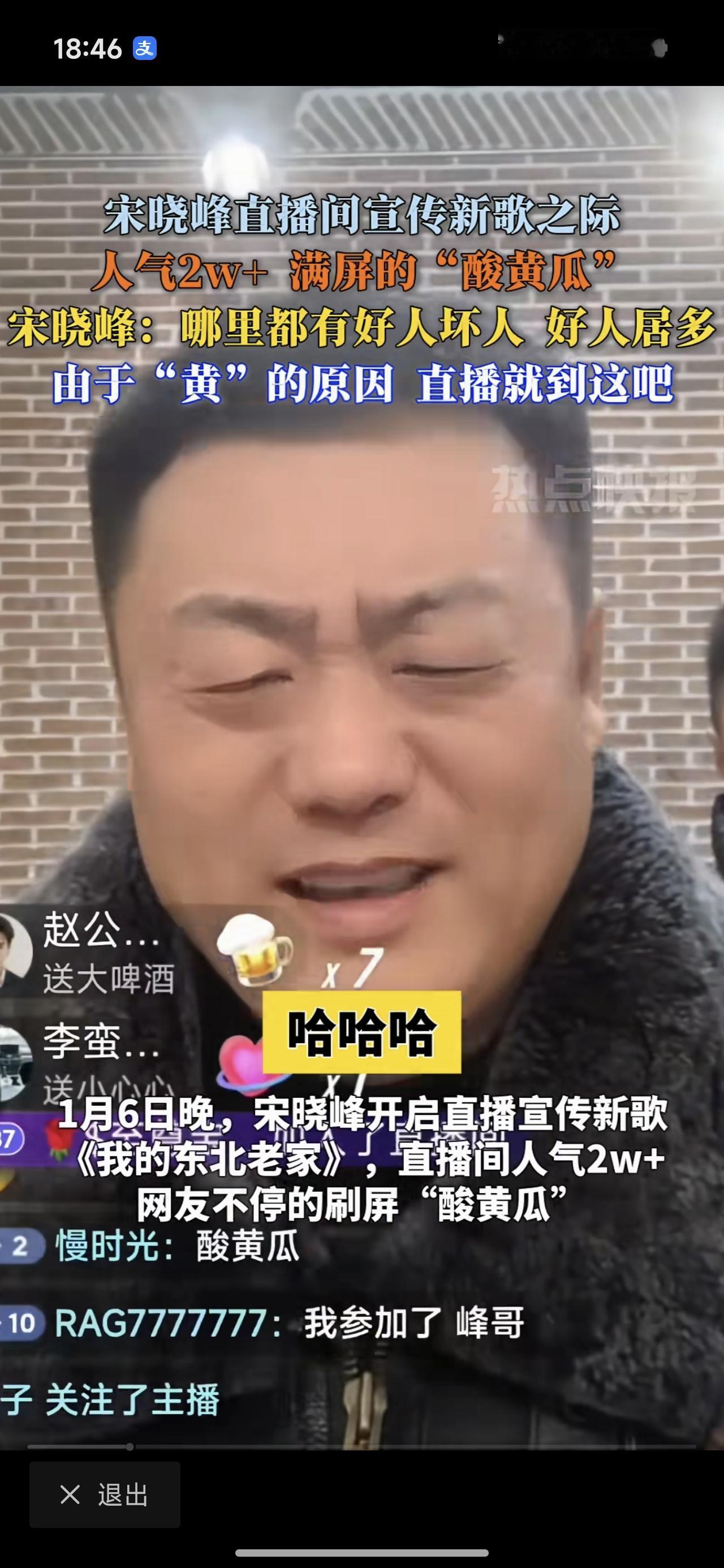 宋晓峰开直播两万➕的流量,满屏打酸黄瓜,笑不活了。闫学晶这一波流量太猛了。北方人都知道,酸黄瓜可好吃了,它不仅有酸菜的香味儿,还有黄瓜的鲜味儿,小味儿挠挠儿的。 把俺们比作酸黄瓜是几个意思?俺们酸她家吃的好穿的好花销大?俺们只是觉得她吃排骨的时候不要吧唧嘴而已。过分吗?别说八十万,八万一年挣上的家庭有多少?月薪三千的有多少?唱几年二人转不知怎么嘚瑟好了!