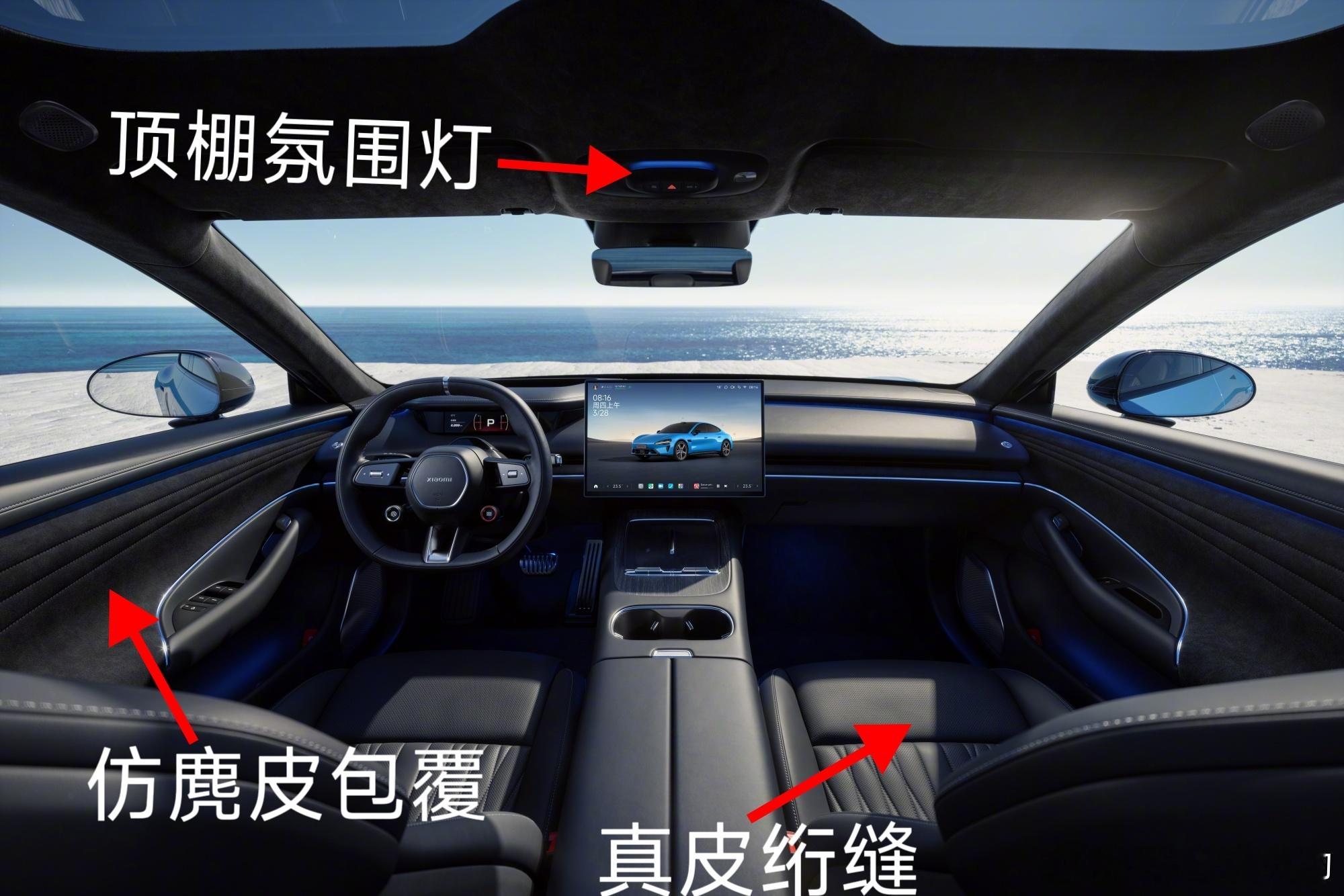 新一代su7 内饰细节解读为什么雷军说新一代su7内饰重新设计,品质感大幅度提升,座椅舒适度也有了质的提升。①环保式氛围灯做了四层顶棚+门反射+门直射+照脚②座椅用了绗缝,舒适性和豪华感提升③门中部用了仿麂皮,提升运动和豪华感④CONSOLE区域最大变化是杯架竖变横从而带来物理按键的集中且更精致⑤无线充电无变化,单充+仿麂皮包覆⑥方向盘6点钟更改为电镀,很有保时捷的感觉。 雷军爆新一代SU7内饰