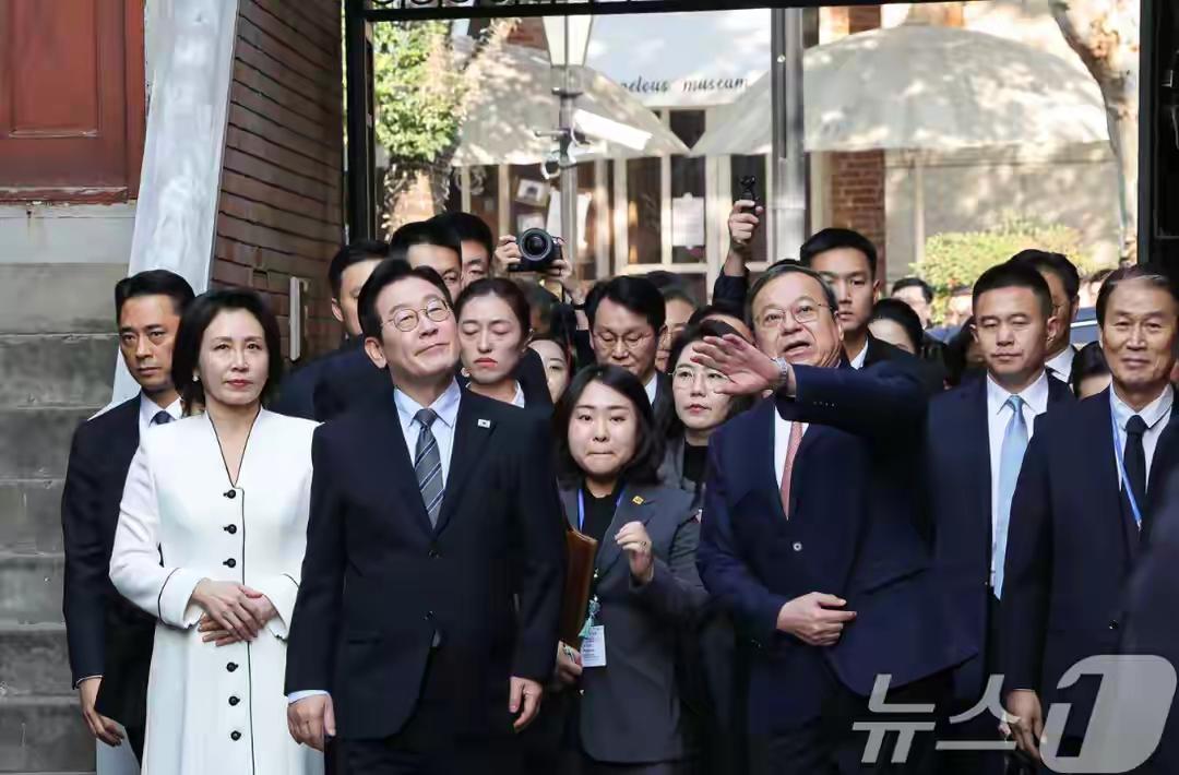 着正装、表情严肃,夫人亦认真参观。旧址虽老旧,却承载难忘历史,意义非凡。它吸引众多韩国旅客打卡,是两国历史情感纽带,见证着往昔岁月,值得铭记与珍视。