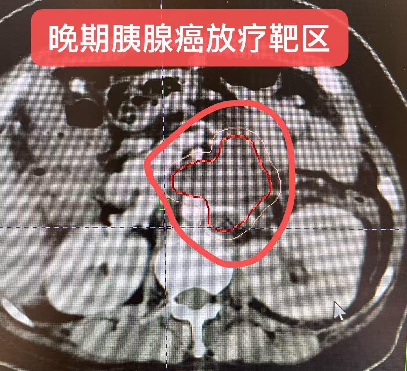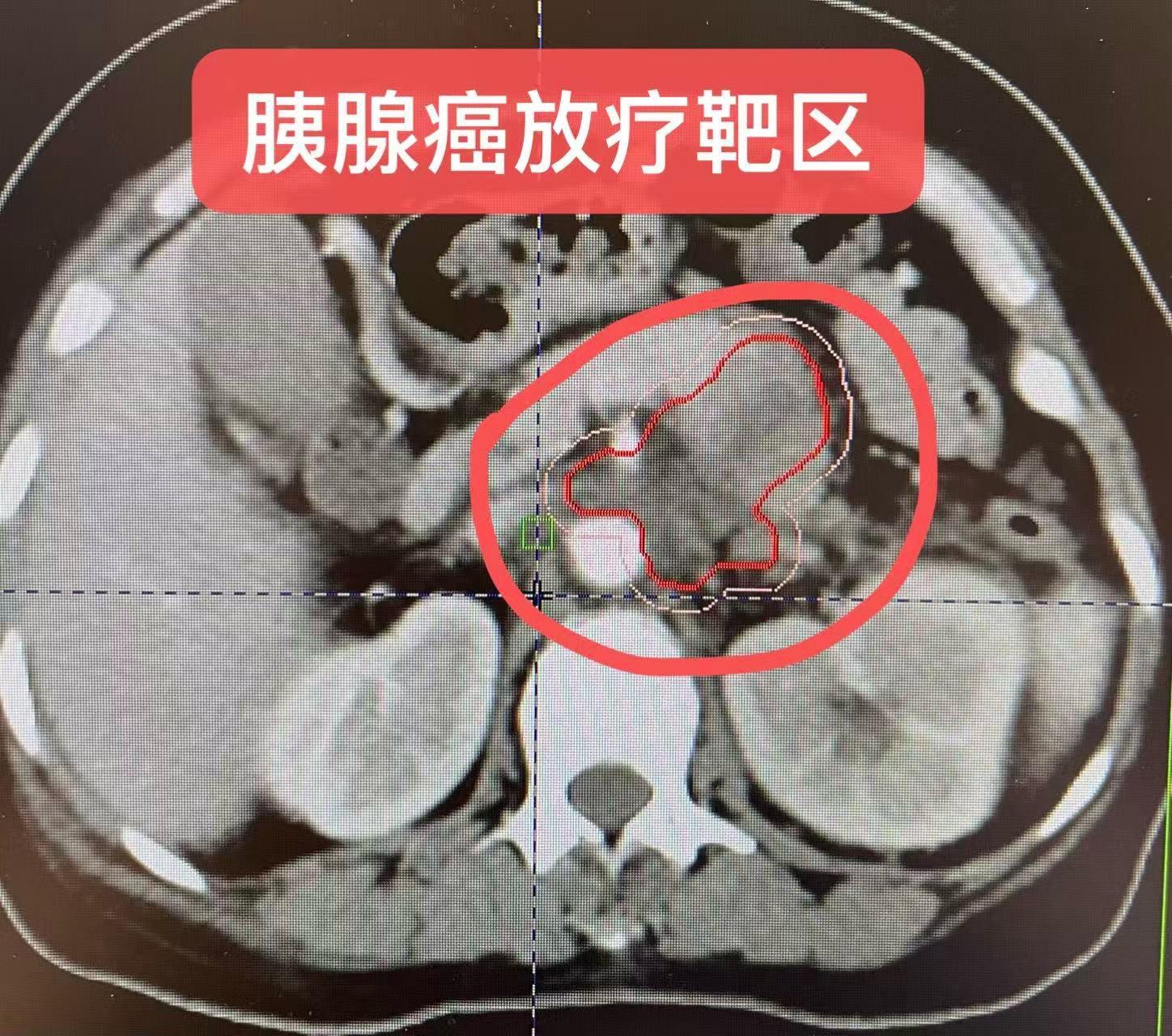 不可手术的晚期-胰腺癌治疗。女患者,晚期,不可手术,经超声胃镜活检:明确为胰腺导管腺癌!考虑基因检测!!积极采用精准放疗➕同步化疗,配合前沿的、权威的临床研究推荐的方案,给患者最大的获益!胰腺癌紧贴肠管,放疗剂量的考虑,要注意肠管的安全性,保护危及器官!