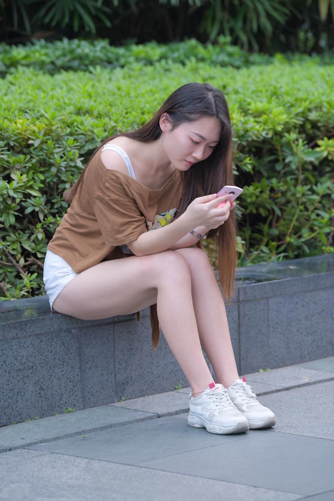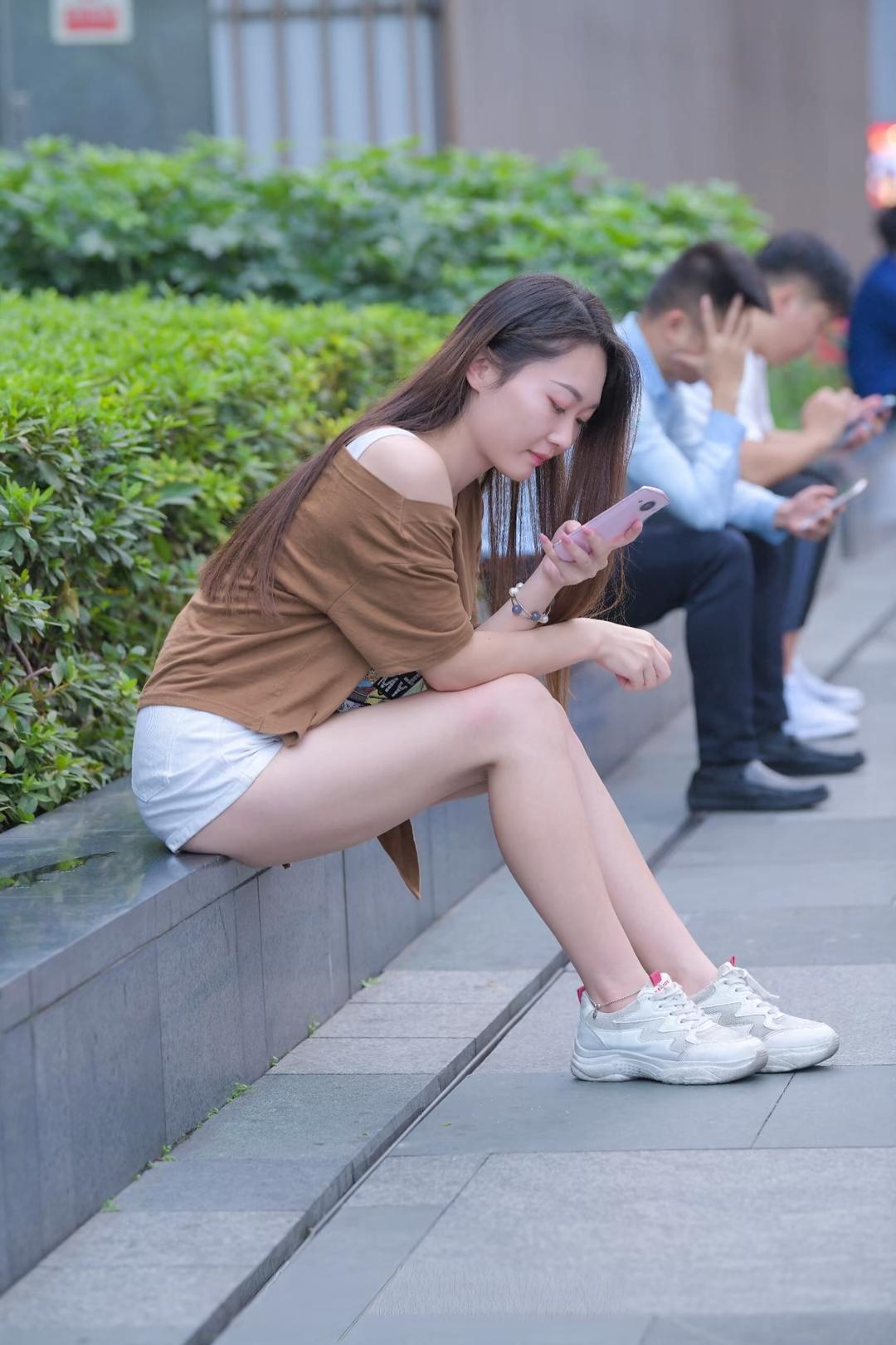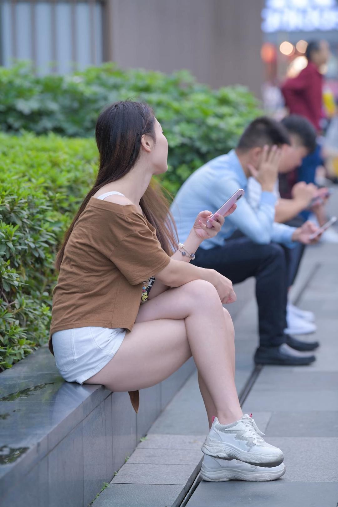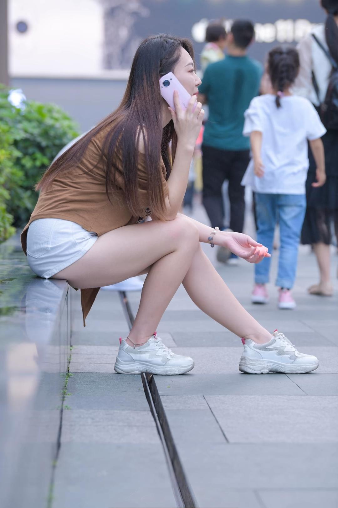 女生拥有一双大长腿是什么样体验? 街拍美腿小姐姐,皮肤白皙。