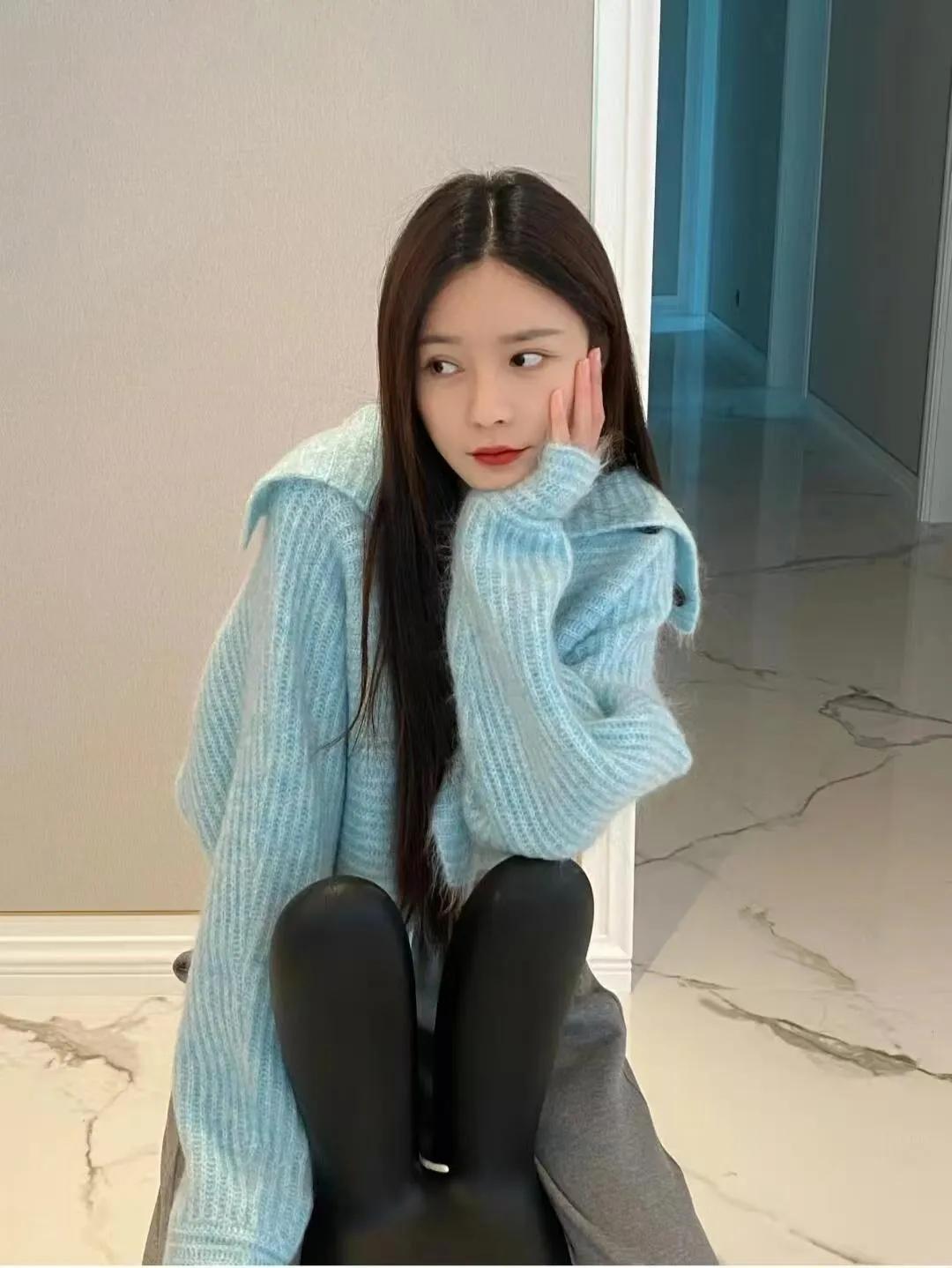 沈梦辰的蓝色毛衣穿搭,把春天穿在了身上! 一件清新的蓝色翻领毛衣,搭配一条宽松的牛仔裤,简约又时髦,减龄效果满分。 这种清爽的配色,不仅显得人很温柔,还特别有活力,真的太会穿了!