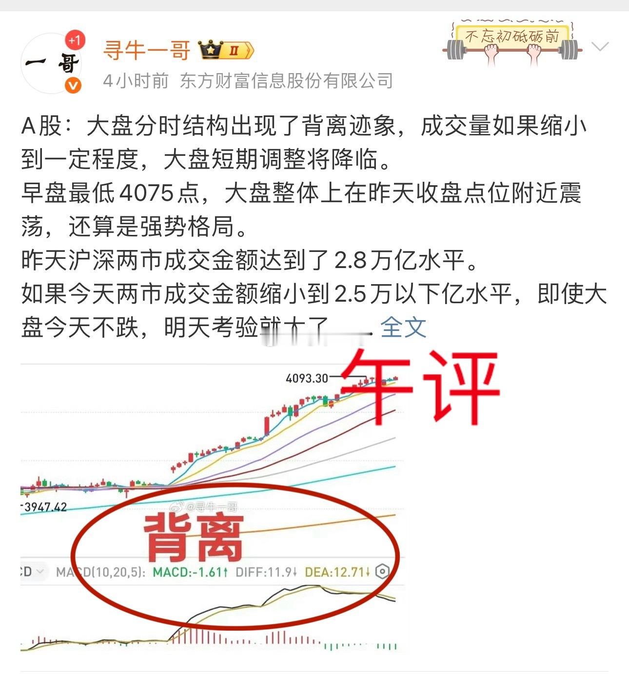 A股:今天大盘的走势还算是比较稳健,明天的关键区域守住了,大盘还有出现新高的机会。1,市场数据沪深两市今天成交金额2.8万亿左右,昨天也是2.8万亿,基本持平。今天放量大涨,今天算是放量滞涨。盘面震荡,略显沉闷。最低点是4069点,最高点是4098点,比波动幅度不足1%。个股分化,近3000只股票绿盘报收。市场情绪还算稳定,涨停个股超过了90只。2,关键区域今天最低点是4069点,明天大盘守住这个点位,大盘还机会创出新高,迈上4100点。如果大盘失守4069点,那么4040点一线可能决定了大盘本月的高度是否就是4098点。一哥12月1日的时候画过一条趋势线。上周末的时候再次提到了这条趋势线,同时提到趋势线已经上升到了4040点区域。大盘连续大涨,突破了趋势线的压制。大盘调整时,踩一下这条趋势线,是无可厚非的,也是合理的。PS:实际上昨天大盘要,在早盘上升途中跌到了4042点,止跌之后,继续上涨。但是,如果大盘踩漏了4040点一线,跌破之后不回头,那就兑现了主力拉高诱多的嫌疑。那么今天的4098点,可能就会成为本月的高点区域。今天午评的时候,一哥提到了大盘分时有背离迹象。下午大盘有一波下跌,大盘从早盘收盘4095点,跌到了下午最低4069点。目前来看,背离周期放大了,对大盘来说,不算是好消息。个人观点,仅供交流,不构成投资建议!理财有风险,投资需谨慎!a股今日看盘股票股市分析