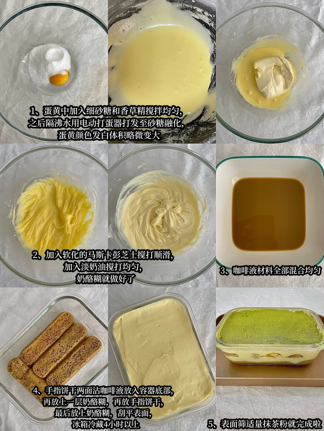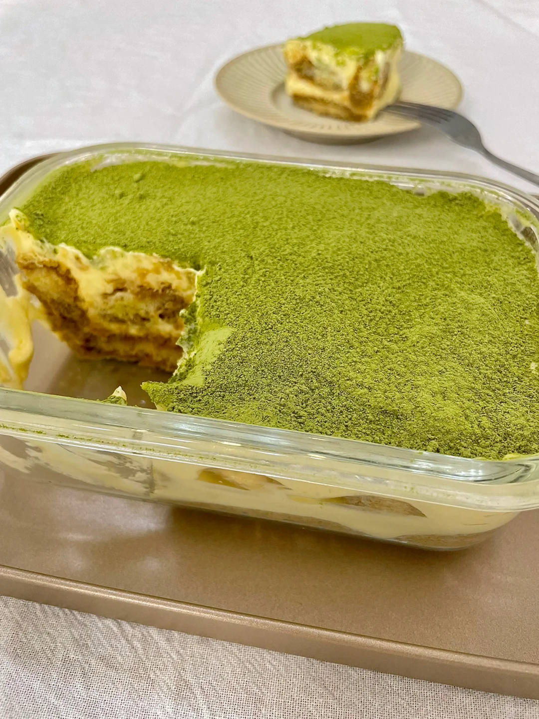 Hey,everyone!今天做了抹茶口味的提拉米苏,相较于传统的提拉米苏,抹茶味道的更加清新,比想象中更加好吃哦😋