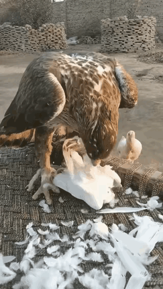 见过心大的,没见过这么心大的鸡!同伴被老鹰啃,它搁旁边看热闹,还觉得“吃了它就轮不到我”,怕不是忘了老鹰的饭量吧?