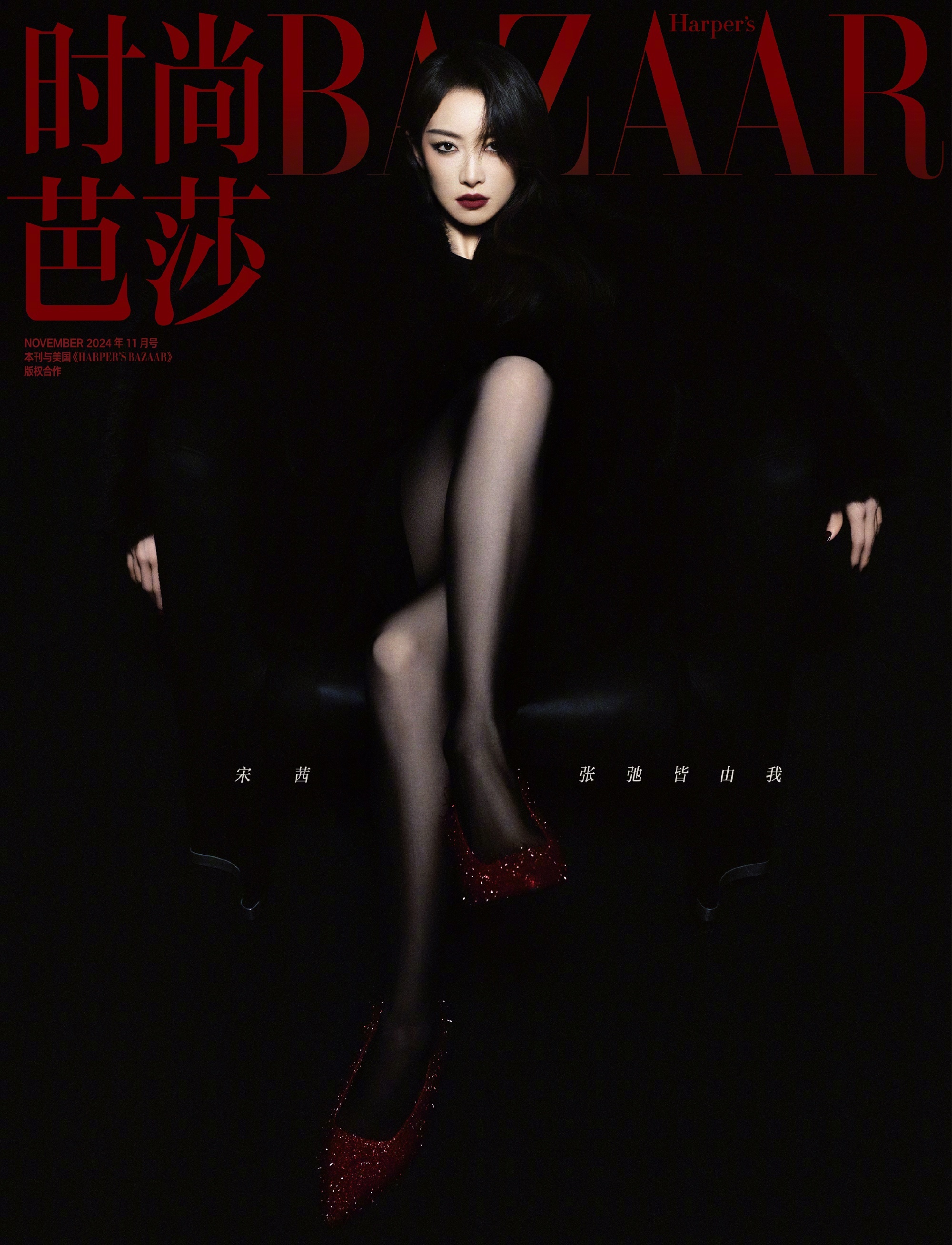 宋茜五登芭莎封面,暗黑风格丝袜穿搭,冷酷感满满。宋茜