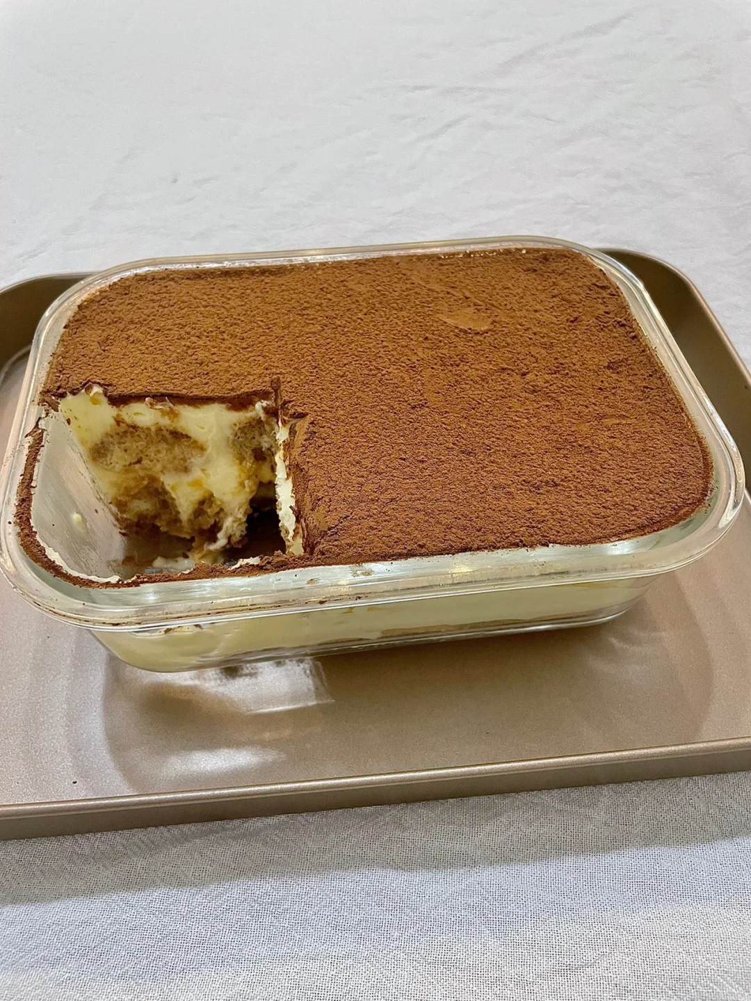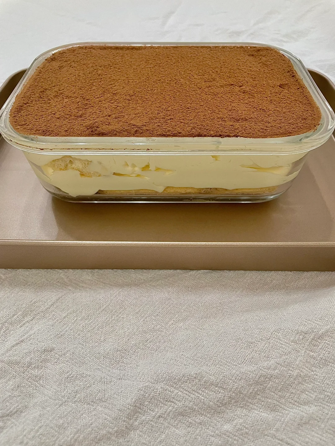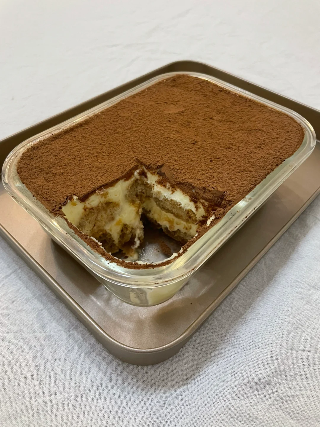 ☕️【所需食材】 奶酪糊部分: 马斯卡彭芝士200克|细砂糖25克|香草精几滴|淡奶油100克 咖啡液部分: 速溶黑咖啡粉2克|细砂糖5克|热水50毫升 其它材料: 手指饼干适量|可可粉适量 ☕️【制作过程】 1⃣️软化的马斯卡彭芝士搅打顺滑,加入细砂糖搅打均匀顺滑,加入几滴香草精和淡奶油搅打均匀 2⃣️咖啡液材料全部混合均匀 3⃣️手指饼干两面沾咖啡液放入容器底部,再放上一层奶酪糊,再放手指饼干,最后放上奶酪糊,刮平表面,冰箱冷藏一小时 4⃣️表面筛适量可可粉就完成啦