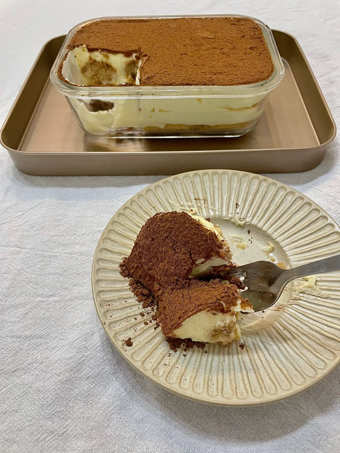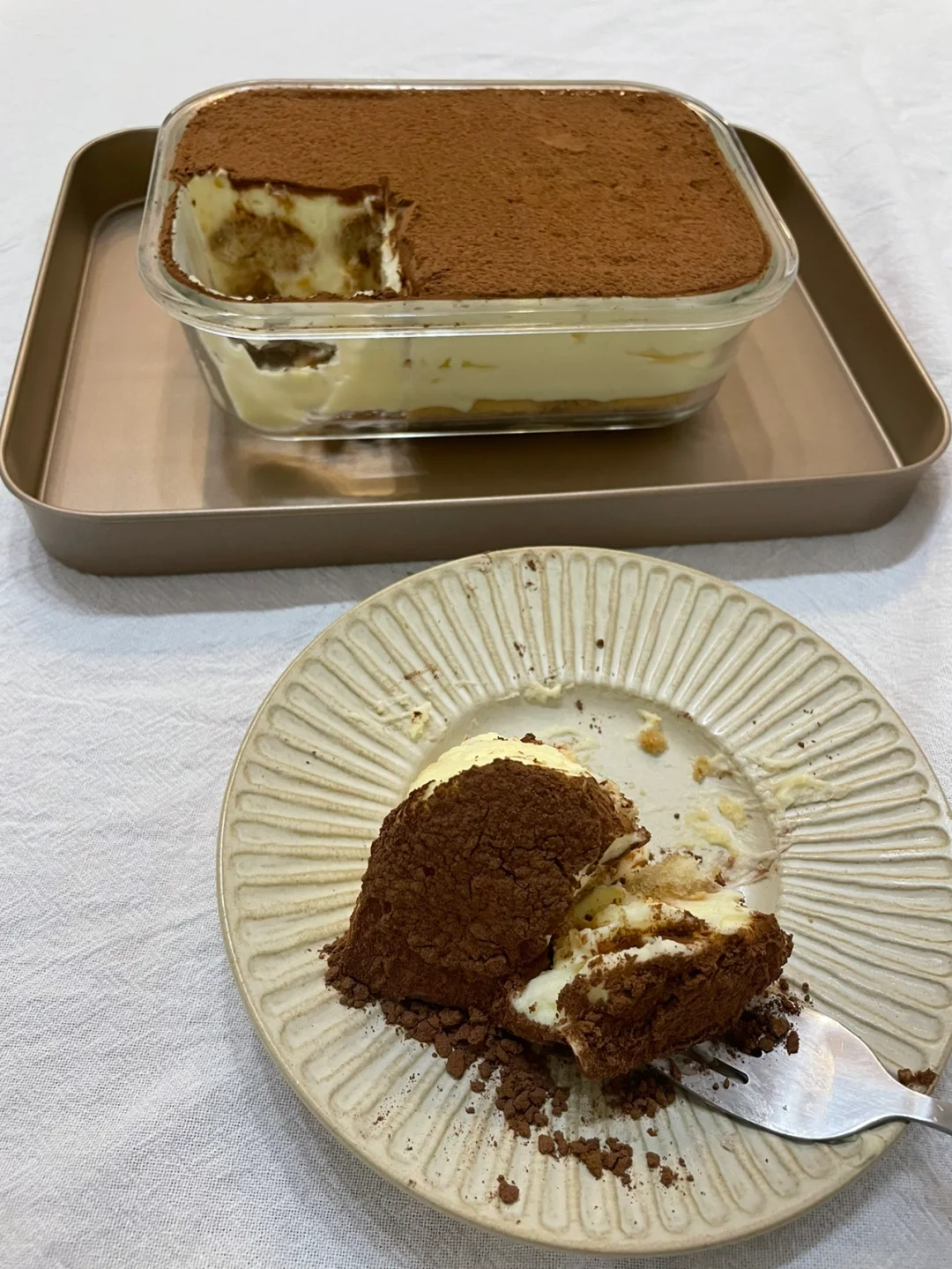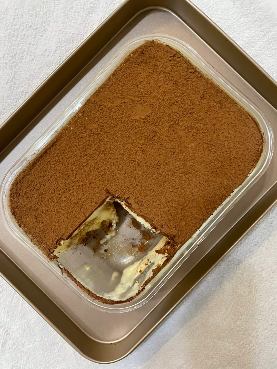 ☕️【所需食材】 奶酪糊部分: 马斯卡彭芝士200克|细砂糖25克|香草精几滴|淡奶油100克 咖啡液部分: 速溶黑咖啡粉2克|细砂糖5克|热水50毫升 其它材料: 手指饼干适量|可可粉适量 ☕️【制作过程】 1⃣️软化的马斯卡彭芝士搅打顺滑,加入细砂糖搅打均匀顺滑,加入几滴香草精和淡奶油搅打均匀 2⃣️咖啡液材料全部混合均匀 3⃣️手指饼干两面沾咖啡液放入容器底部,再放上一层奶酪糊,再放手指饼干,最后放上奶酪糊,刮平表面,冰箱冷藏一小时 4⃣️表面筛适量可可粉就完成啦