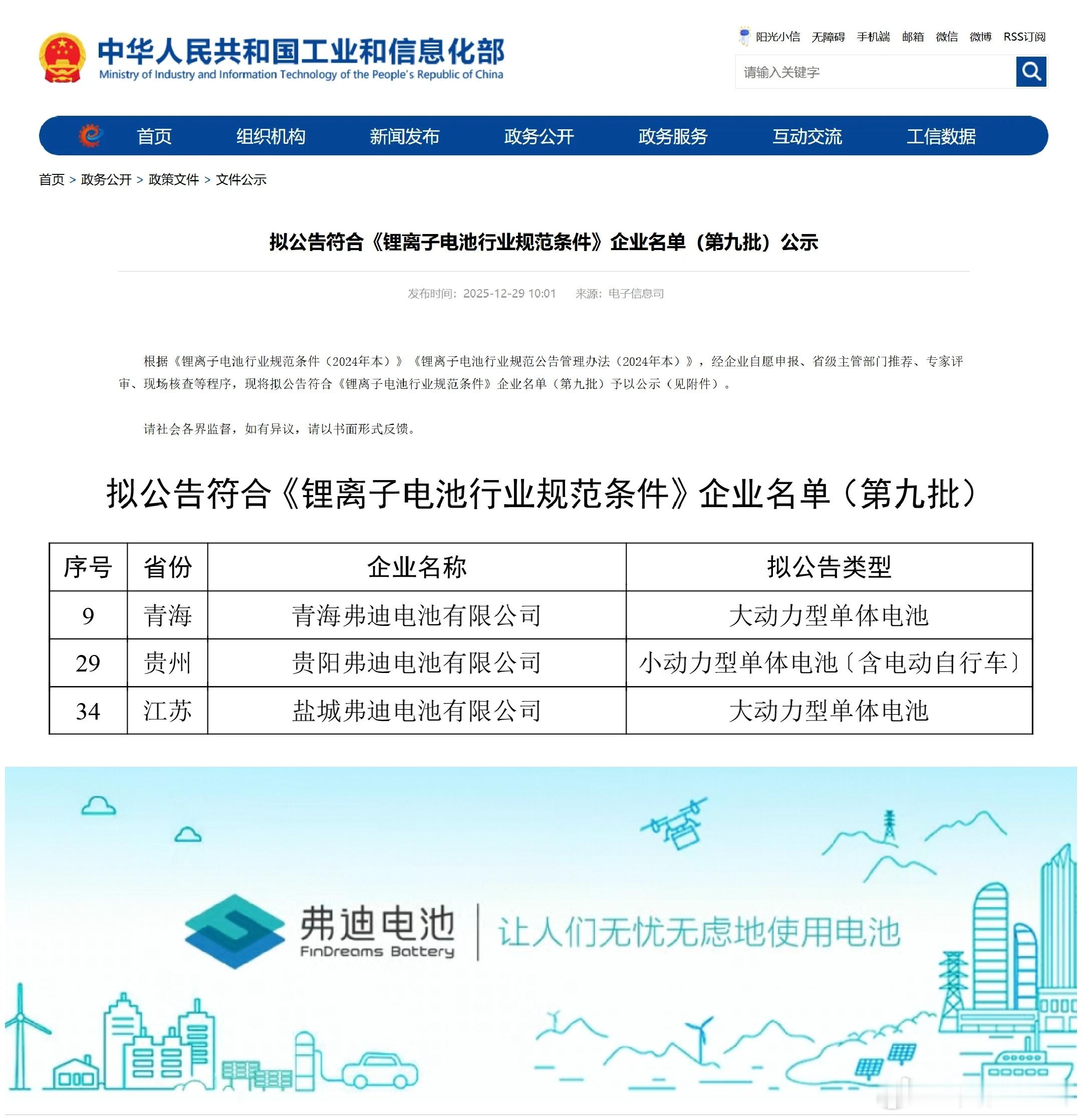 弗迪电池成功入选工信部 《锂离子电池行业规范条件》企业名单