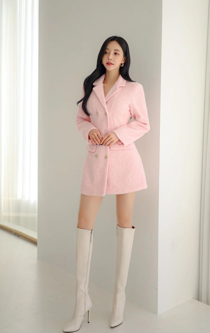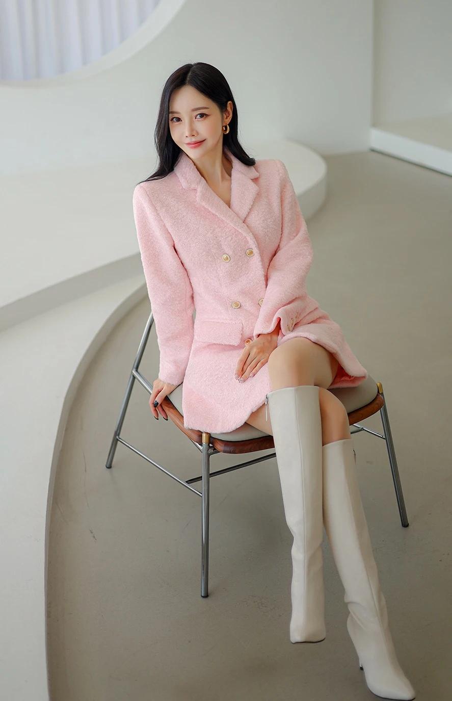 孙允珠-粉色毛呢外套搭配高筒靴,优雅又时尚!甜美小仙女的穿搭 每天美丽照片分享