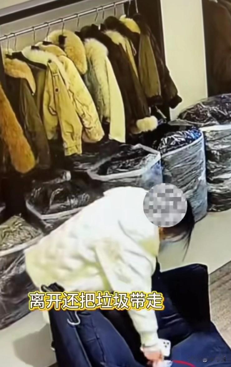 笑喷,偷6000元貂皮还顺走垃圾,这波操作是有教养还是没素质? 这不,近日在株洲,一名年轻女子,在一服装店试衣服的过程中,轻车熟路的就给顺走了她想要的衣服。只见她看中一件价值6000的貂皮背心,看下四周没人,可她偏偏忘了现在哪家店铺不装摄像头呢? 她很熟练的把衣服先穿在身上,然后把外套脱一半,再假装把外套披在看中的貂皮背心上面,就这样,这件衣服就已经收入囊中,神不知鬼不觉就借着外套的力量,塞入了她随身携带的口袋里,貌似里面还有很多衣服呢。 走的时候,监控还拍到,人家还带走了沙发上的垃圾,这波操作直接给网友看懵了,说她没教养吧,人家还知道顺手扔垃圾;说她有教养吧,转头就顺走了人家6000块的衣服,这小偷小摸的行径实在是一言难尽。 果不其然,被抓到后的她,那包“乾坤袋”里还有她同样方式“顺走”的别家的裤子,鞋子,真是一应俱全啊。这新年的整套搭配全有了。 不过接下来,她也没机会穿了,因为牢里应该会统一发放。