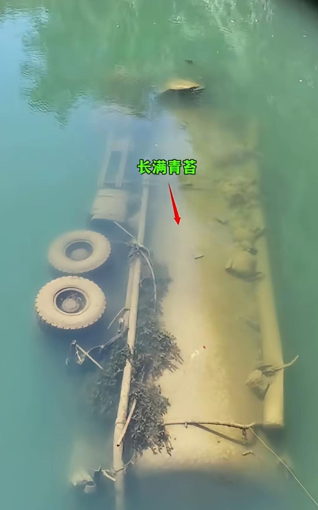 不懂就要问,这大卡车不知为何掉在河里?车主当时为啥就不想办法把它打捞上来呢?多可惜啊!百思不得其解!!![what]