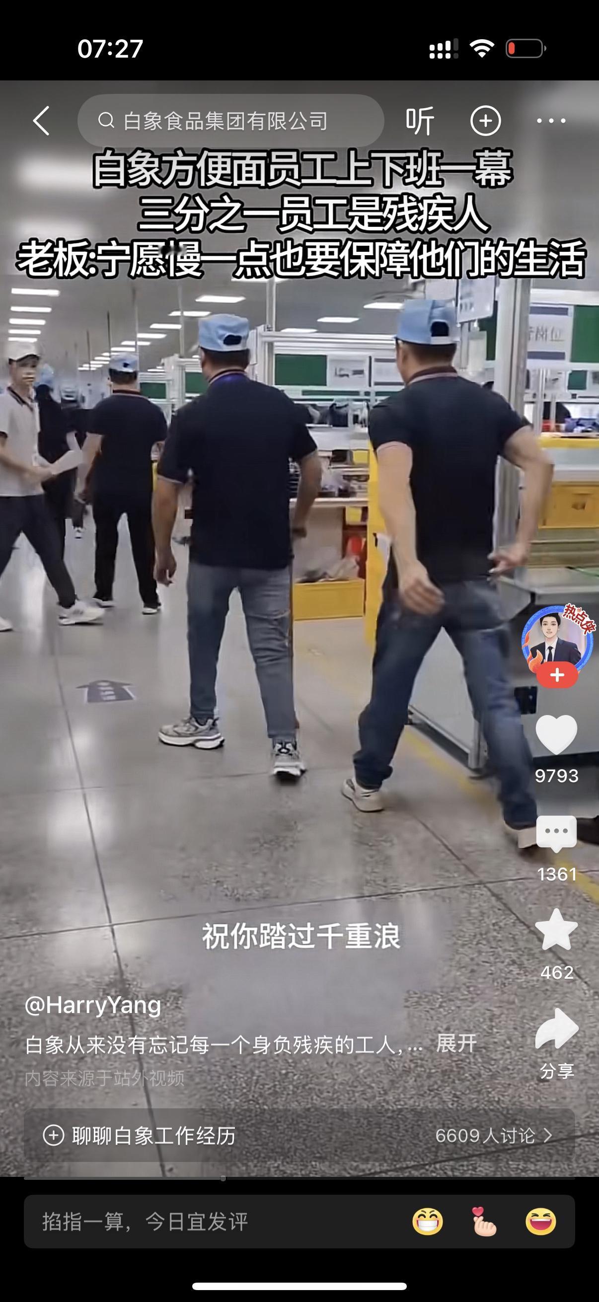 白象方便面大家都比较熟知。白象的三分之一员工都是残疾人。老板坦言宁愿慢一点,也要保障他们的生活。这是多么的大爱啊。白象老板提供的不仅仅是一份保障残疾人生活的工作,更多的是给予他们一种尊严,一种生活下去的勇气。以后我只买白象方便面,其他的都靠边站。