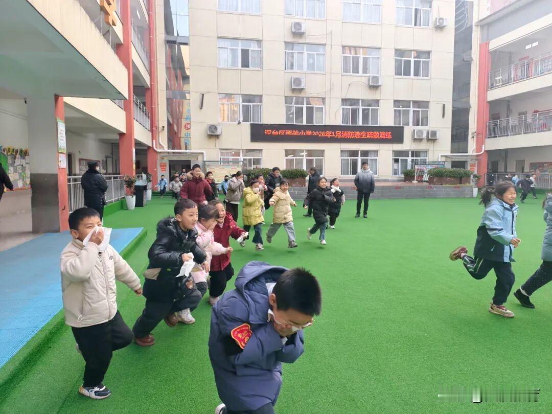 随着急促的警报声响起,消防演练正式拉开帷幕。各班学生在老师的引导下,立即从教室前后门有序撤离,从最近疏散楼梯向下疏散。演练中,学生们弯腰低头、捂住口鼻,沿着预定的疏散路线,快速、有序地撤离至操场安全区域。值日老师则在楼道、楼梯口等重要位置协助疏散,确保无一名学生掉队。整个过程中,学生们保持了高度的纪律性和自我防护意识,展现了良好的应急反应能力。 学生疏散到操场后,按班级队列在指定位置站好,班主任老师立即清点人数,进行人员统计并向分管安全副校长上报,确保无一遗漏。 随后,分管学校安全工作的副校长杨敏对本次消防疏散演练做了总结讲话。对全体师生在演练中沉着冷静、快速逃生的安全自救意识给予了肯定,对学生们在演练中听从指挥的规则意识给予了表扬,但也指出了演练中存在的问题,还需进一步提高撤离疏散的速度,加强学生对消防安全知识的学习,最后她还进行了交通安全、居家用电用气安全、校园安全等方面的宣讲,务必让学生把安全铭记于心。 消防安全无小事,时时处处需留心。通过消防应急疏散演练,不仅引导全校师生掌握了应急逃生的正确方法,熟悉火灾发生时紧急疏散的程序和线路,更提升了大家的消防安全意识和自救能力,以安全教育塑造了孩子们的牢固防线,学校将继续加强消防安全教育,为学生们创造一个安全、和谐的学习环境。