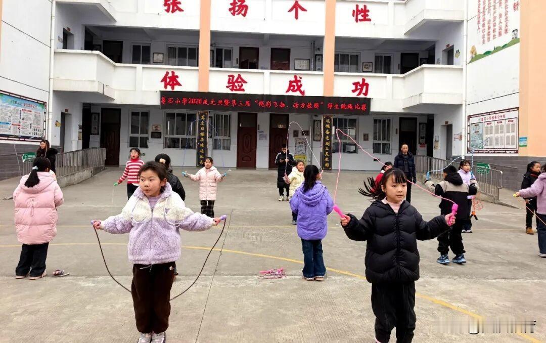 1月7日,西乡县葛石小学第三届冬季校园跳绳比赛圆满收官。本次比赛以“绳舞飞扬,欢庆元旦”为主题,自12月30日起,采用1分钟计时计数赛制,分年级举行比赛,全校540余名学生、40多名教师全员参与其中。 赛前,各班扎实开展常态化跳绳训练,体育教师下沉班级指导动作技巧;家校联动发力,督促学生每日打卡练习,为比赛筑牢坚实基础。赛场上,选手们身姿矫健、绳影翻飞,轻快的脚步踏出活力节拍,充分展现出昂扬向上的精神风貌。 最终,6个班级斩获年级组集体一等奖,36名学生获得年级组男、女生优胜奖,六1班冉雨嫣同学刷新全校纪录,获得本届跳绳比赛全校总冠军。