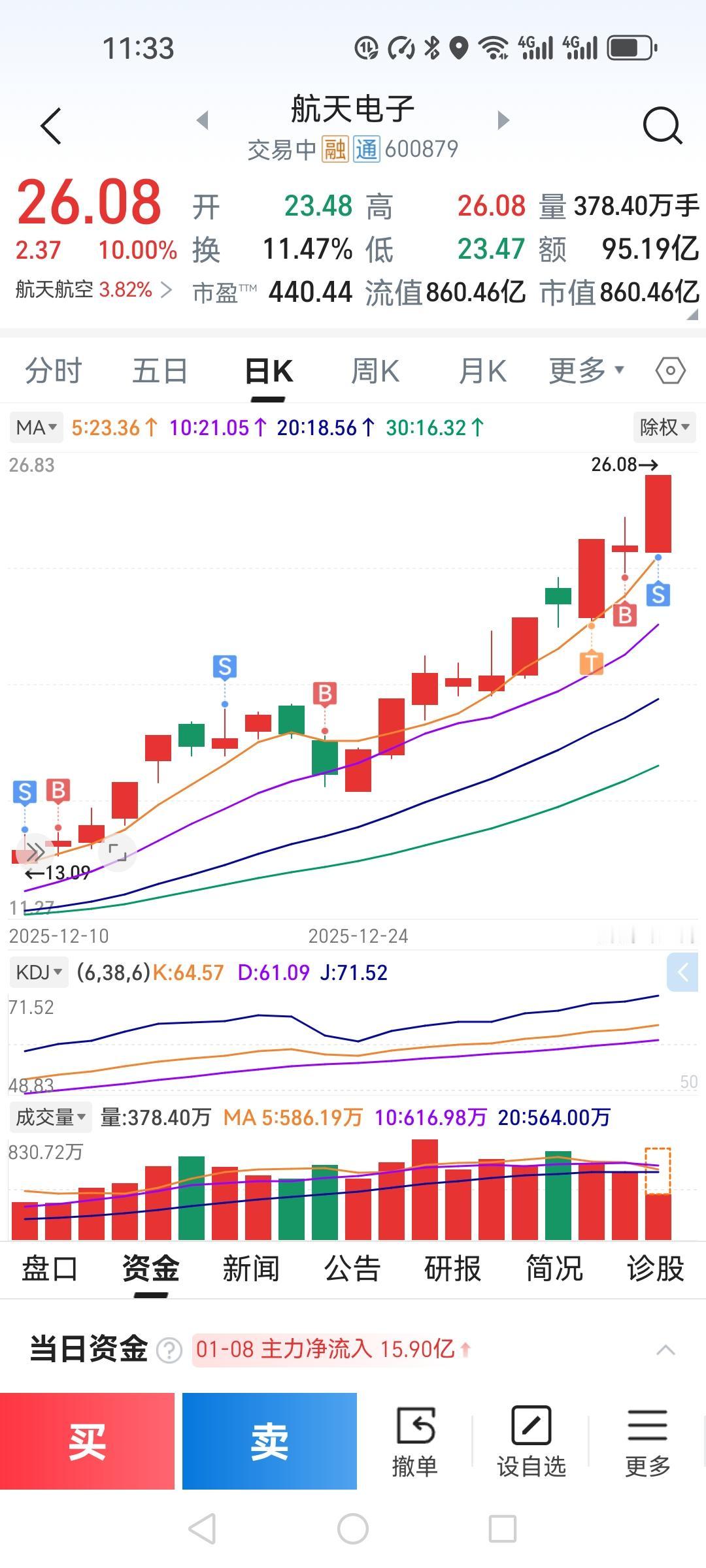 航天dz又强势涨停了! 早晨盯着航天电子:23.48低开,下探23.47,在我几乎要叹气时,它忽然调头向上。我生怕到手的利润肉又飞了,25.15元赶紧抛出。结果卖出后它像装了火箭一样,直接冲上涨停26.08元……画面太刺眼。每次都这样,熬过了震荡,却输给了自己的急躁。股市里最远的距离,是“我卖了”和“它涨停了”。 你们有没有这样的经历,谈谈你们的经验,怎么能把握住买卖点。航空航天板块 航天概念股 航空航天股