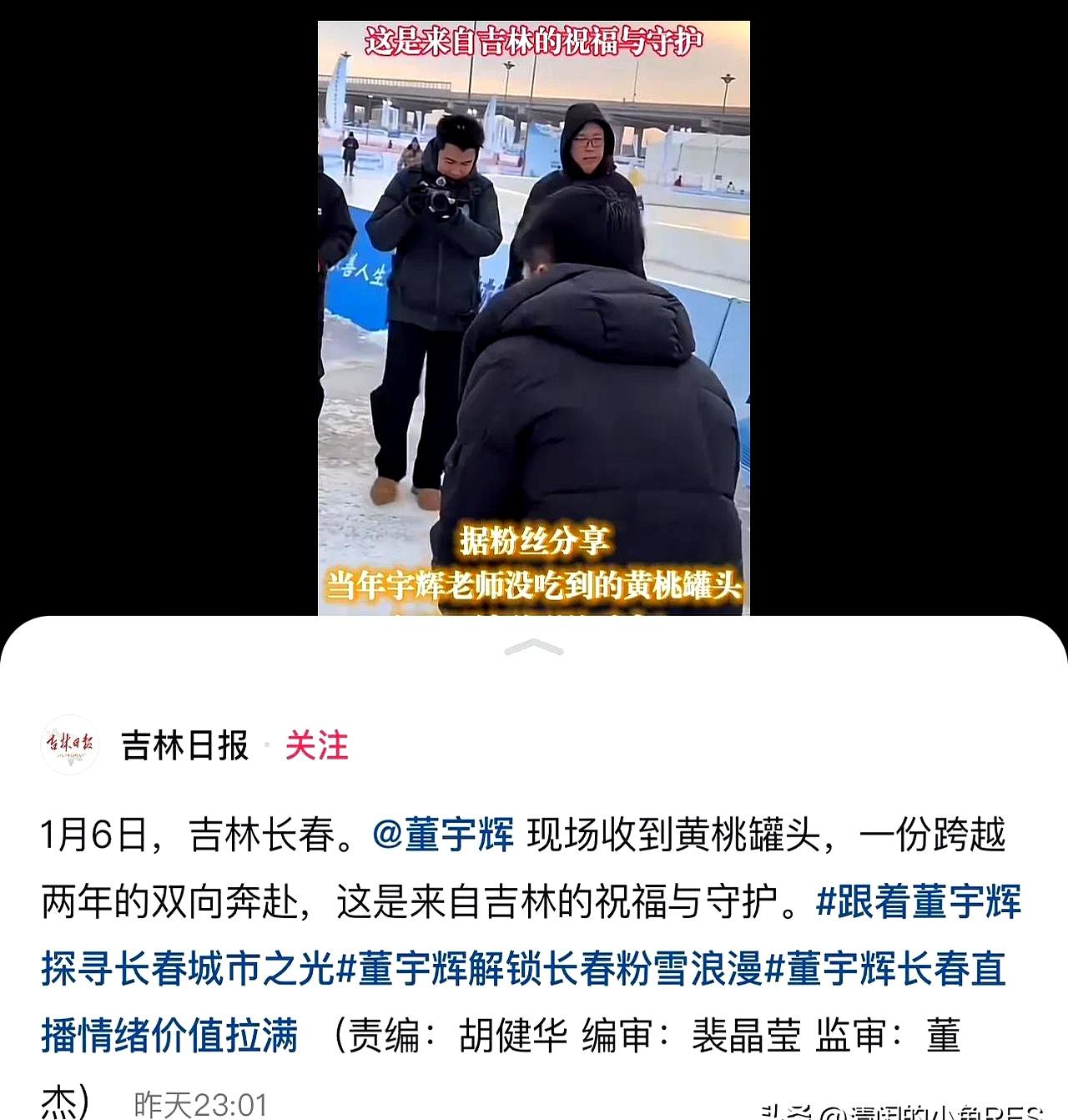 大半夜刷到吉林日报的动态,我还以为自己眼花看错了号。 堂堂省级党报,三更半夜不发红头文件,竟然晒起了黄桃罐头,还特意配了一张董宇辉两年前“小作文”时期的旧照。 这哪是官媒啊,分明是把“护犊子”写在脸上的家长。 想想平时咱们见惯了那些打着官腔、只会发通稿的机构,这种打破次元壁的“感性”才真叫人头皮发麻。 两年前的那个冬天,吉林或许是很多丈母娘心里“不可言说的痛”,如今这罐黄桃,算是把这根刺给拔了。 所谓的格局,有时候不在于会议桌上说了什么,而在于深夜里这无声的“懂你”。 这一刻,官方的严肃与民间的温情,竟在一张旧照片里达成了某种奇妙的和解。