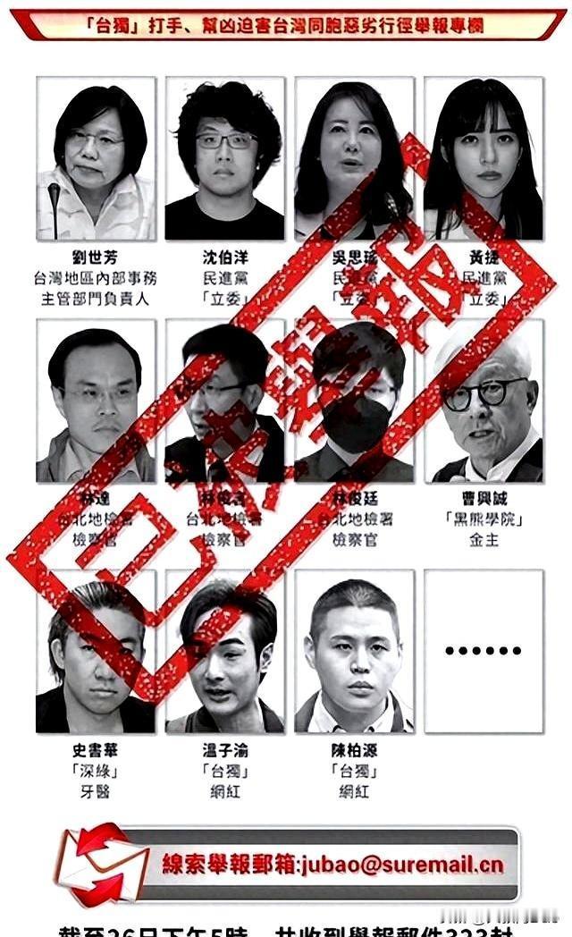 14名"台独"顽固分子+12名打手曝光,正义之手正在行动! 2026年1月7日,国务院台办宣布将刘世芳、郑英耀列为"台独"顽固分子,陈舒怡列为"台独"打手帮凶。至此,"台独"顽固分子增至14人,打手帮凶达12人。这标志着大陆对"台独"势力的精准打击进入新阶段。 刘世芳是台湾地区内务主管部门负责人,郑英耀则是教育主管部门负责人。这两位身居要职的人,竟在公开场合鼓吹"一边一国"的分裂谬论。郑英耀甚至声称要编制所谓"识读'大陆威胁'的国家认同教材",要求禁止中小学至大学各层级与大陆进行教育交流。刘世芳则大肆打压支持两岸交流合作的台湾人士,迫害在台大陆配偶。 有意思的是,这些名单不是凭空而来。2025年3月国台办设立举报专栏后,首日就收到323封举报邮件,刘世芳赫然在列。到2025年11月,举报量已突破上万封。两岸民众对"台独"行径的零容忍态度,由此可见一斑。 国台办发言人陈斌华强调,"台独"是两岸关系和平发展的严重祸害,依法惩治极少数"台独"顽固分子,是为了维护国家主权和领土完整,保障台湾同胞切身利益福祉。这番话直指要害,说出了两岸同胞的共同心声。 我们看到,这份名单中,沈伯洋、曹兴诚等人既在顽固分子名单中,也出现在打手帮凶名单里。这说明他们的行为在两岸民众中造成广泛恶劣影响,也表明大陆打击"台独"势力是精准、系统、全面的。 从2024年10月首批12人名单,到2026年1月新增2人,再到打手帮凶12人的公布,大陆对"台独"势力的打击网络正在逐步织密。这不仅是对"台独"分子的严正警告,更是对两岸和平稳定发展的坚定维护。 特别值得关注的是,大陆不是简单地"点名",而是给出了具体惩戒措施:禁止入境、限制经济合作、切断财路、终身追责。这意味着"台独"分子无论逃到哪里,都难逃法律制裁。 两岸一家亲,和平发展是大势所趋。这份名单的公布,再次向世界表明:任何企图分裂国家、破坏两岸关系的行为,都将付出应有的代价。 您认为两岸关系未来应该如何发展?这份名单公布后,对台湾民众会产生什么影响?欢迎在评论区留言讨论,点赞关注,一起为两岸和平发展发声!
