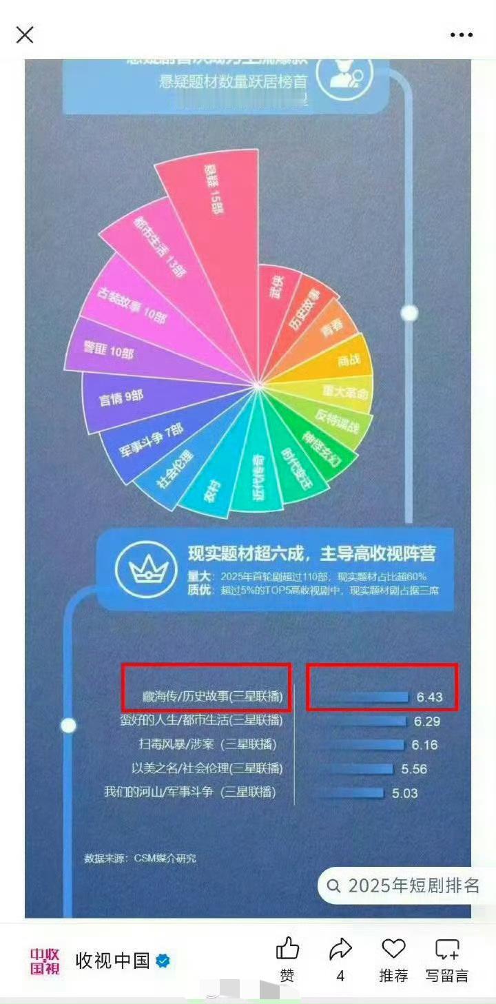 对于成毅粉丝造谣藏海传成绩 1、优酷出来2次(图一图二) 2、混淆户次人次的时候,昨天收视中国出来打假(图三) 3、今天央视出来公布25年top10收视率(图四) 被官方三番两次出来打假,真的好丢人啊。 第一,证明业内都知道粉丝吹假🍺,指不定怎么蛐蛐,很丢脸 其次,业内毫不犹豫打假回去,证明业内非常看不上,非常嫌弃