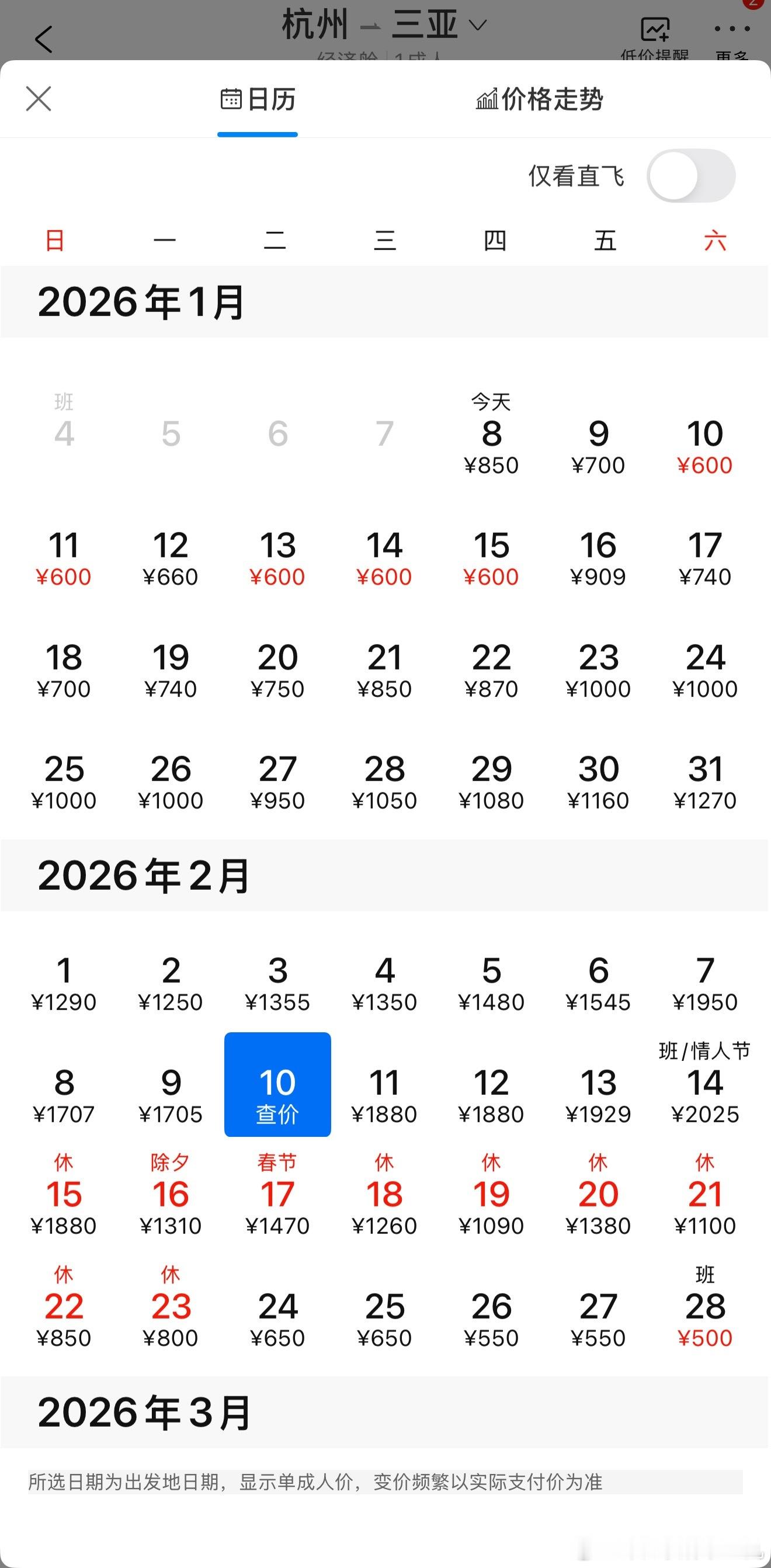 也就这两天稍微便宜一些些!只要时间线滑动到学生党放寒假以及春节前后,你会发现机票贵到让你绝望 特别是前往三亚这种热门旅游以及过冬圣地~
