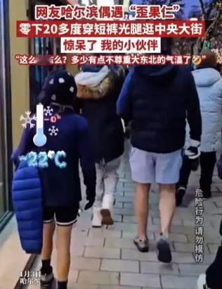 震惊了!黑龙江哈尔滨一名男子外出逛街时,看见几位外国游客,居然穿着短裤在街上走来走去,顿时感到非常讶异。 首先得明确,这绝非单纯的体质差异能解释,毕竟就算是长期生活在寒带的人,也不可能真的对零下20℃的低温无动于衷,更多是他们对“寒冷”的应对逻辑和我们不一样。 我们习惯了全方位包裹,把保暖做到无死角,而不少外国游客的保暖思路更偏向“重点防护”,他们觉得心脏、肺部这些核心器官集中在上半身,只要上半身穿够羽绒服、厚外套保住核心温度,下半身哪怕少穿点也不会太难受。 这种理念下,短裤配厚上衣的穿搭就成了常见操作,就像我们冬天穿羽绒服配薄打底裤一样自然,只是在哈尔滨的极寒天气里,这种搭配显得格外扎眼。 再往深了说,这背后还有不同地域文化和生活习惯的影响,尤其是一些来自寒带或温带海洋性气候地区的游客,对寒冷的耐受度本就通过日常习惯慢慢培养起来了。 比如北欧、俄罗斯部分地区,冬天平均气温也经常在零下十几度,当地人生来就习惯了在寒冷环境中活动。 甚至会把冬季短时的露天活动当作一种锻炼,穿短裤出门对他们来说算不上什么挑战,就像哈尔滨本地人冬天习惯在室外待着,而南方人到了零度就觉得难以忍受一样,都是长期环境熏陶的结果。 还有些来自热带的游客,之所以敢穿短裤,更多是出于对冰雪文化的好奇和打卡需求,他们心里清楚这种“抗冻”是短期的,只要快速拍完照就转入室内,没必要像本地人一样为长时间户外活动做全方位保暖准备。 更关键的是,这种看似“不尊重大东北气温”的穿搭,其实藏着不少旅游消费的小心思,说白了就是为了打造独特的社交传播素材。 现在的旅游早就不只是看风景,更要通过短视频、照片在社交平台分享体验,而零下20℃穿短裤的反差画面,本身就自带话题性,很容易获得高流量。 就像之前哈尔滨中央大街出现的俄罗斯小伙穿运动短裤拍冰雕、法国情侣光腿合影的场景,他们大多停留时间很短,基本都控制在10分钟以内,刚好卡在裸露皮肤冻伤的临界时间之前,拍完就立刻钻进附近的商场、餐厅取暖。 这种精准的时间控制,说明他们早就做好了规划,不是真的不怕冷,而是把“穿短裤逛冰城”当成了一次有策划的打卡体验。 另外,一些容易被忽略的小细节也起到了辅助作用。 比如不少游客看似光腿穿短裤,实则在腿上贴了隐形的发热贴,或者穿了超薄的石墨烯保暖裤,这些高科技保暖用品既不影响美观,又能提供足够的局部热量; 再加上出门前会喝热巧克力、热红酒这类高热量饮品,提前为身体补充能量,短暂抵御寒冷自然不成问题。 还有些人的饮食习惯也在潜移默化中帮了忙,比如长期摄入高蛋白、高脂肪的食物,体内储存的热量更多,短期暴露在低温环境中时,代谢率会快速提升,身体能更快产热,这也让他们比习惯清淡饮食的人更能短暂适应寒冷。 说到底,这种看似反常的穿搭,是理念、习惯、消费需求和小技巧共同作用的结果,不是外国游客真的不怕冷,只是他们应对寒冷的方式和我们不一样,才在哈尔滨的街头造就了这种让人讶异又觉得有趣的场景。