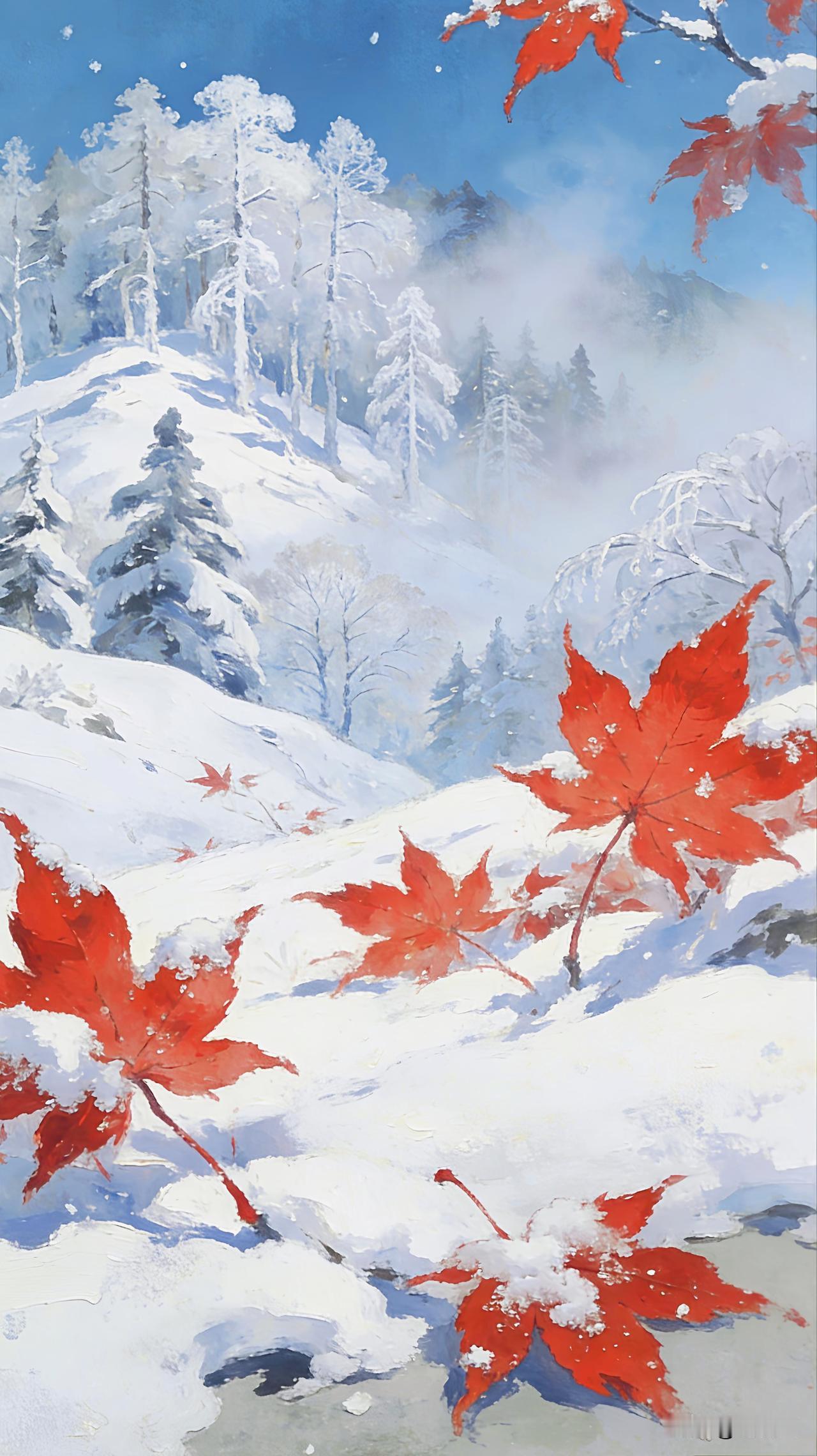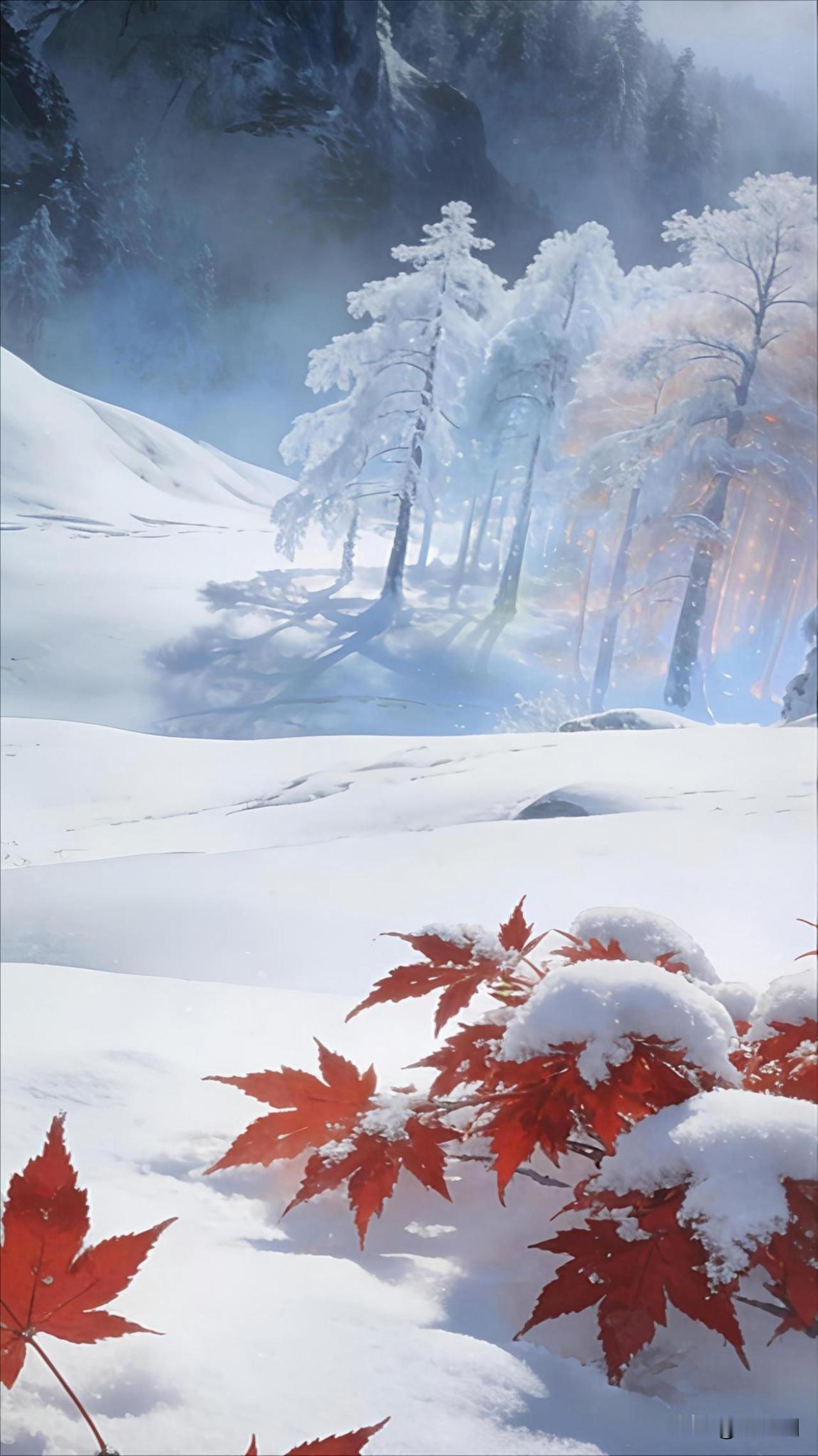 雪砌琉璃界,寒雕碧玉松 垂崖银汉落,悬魄水晶封 素裹千山寂,丹燃一叶秾 谁言冬色寡?天地蕴春踪 注:本诗通过“银汉落”“水晶封”摹写冰瀑冰花之奇观,以“碧玉松”“丹燃叶”勾勒雪中青松红枫之色韵碰撞。尾联“天地蕴春踪”点睛,于凛冽中见生机,在静穆处听惊雷,诠释冬藏春生的自然哲思。
