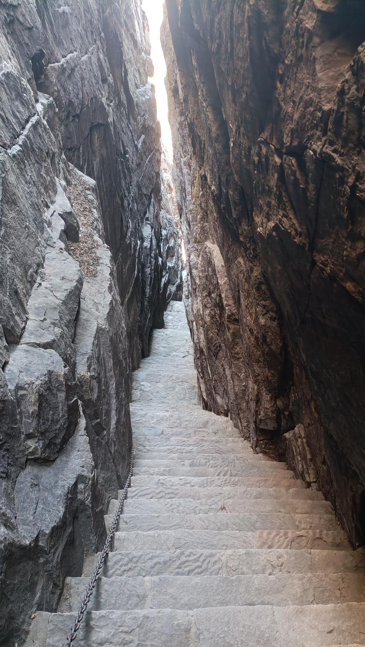今天来爬嵩山,五岳中的嵩山确实不错。门票才50元,这一路景色绝对值回票价。 一线天是最有意思的点,不能错过的打卡点。这一段的险,是嵩山的灵魂。 主峰峻极峰是最高点,也是个打卡点,拍照好地方。上面可以看到整个嵩山的大,大气磅礴。 提醒大家来嵩山一定要带猫粮,一路的喵星人等你投喂