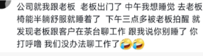 下午三点多被老板拍醒, 就发现老板跟客户在茶台聊工作 ,跟我说你别睡了,你打呼噜, 我们没办法聊工作了