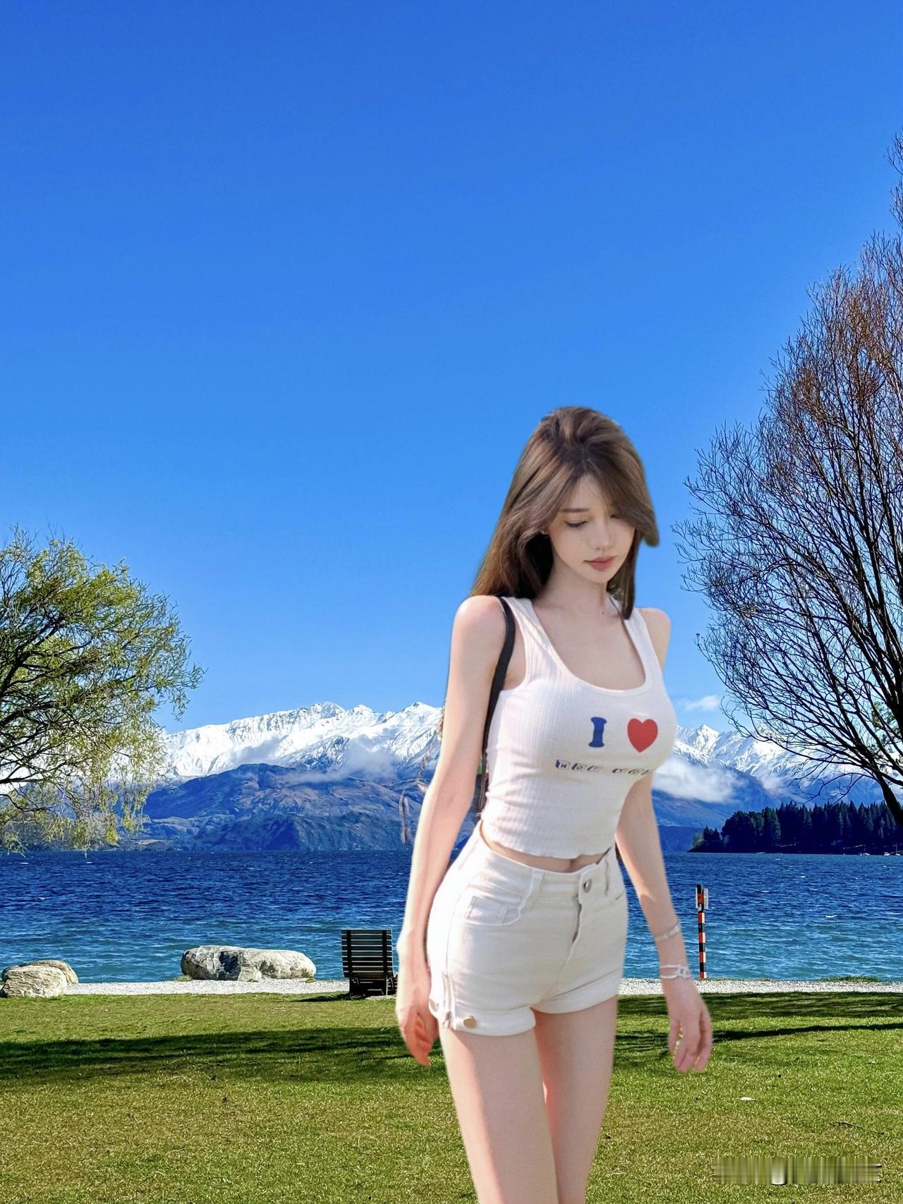 雪山下的少女,心中有爱,美如画卷。