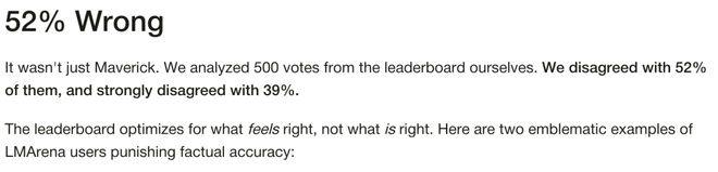 LMArena的负责人们对此心知肚明。他们公开承认,用户确实偏好长回答、漂亮格式和表情符号,而不是正确答案。