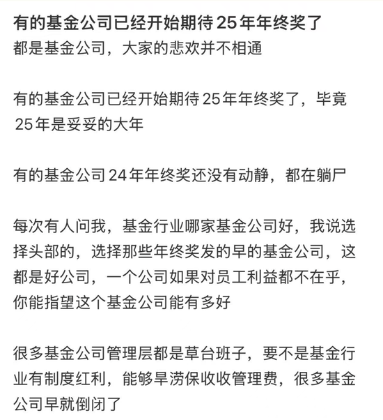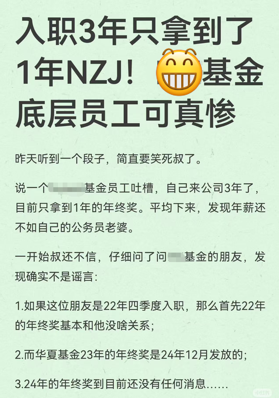 到了2025年,拖延症依旧没改。网传某基金公司员工来公司3年了,目前只拿到1年的年终奖。