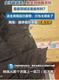 “坏到骨子里了”!河南漯河,一大妈家里有衣服破了,需要一块黑布,于是大妈就跑到裁缝店找布,到处翻找没找到合适的,结果大妈趁店里无人,直接把店主放在凳子上的一件羽绒服剪了一块拿去用,店主到店后发现羽绒服掉了一地的绒,查看监控后发现了原因,然后果断报了警。 “就算再找不到自己想要的布,也不能从好的衣服上剪啊!”本来只是补个衣服的事,可能也就几块钱,结果现在搞得民警都出动了。 当时大妈来到裁缝店想找一块布缝衣服,结果找来找去都没找到自己想要的,而就在大妈准备离开的时候,目光突然放在了店里一件完好无损的衣服上。 监控画面显示,大妈先是用手摸了摸衣服,像是在掂量厚度,又左右看了看,确认店里确实没人后,直接用剪刀对着羽绒服下摆“咔嚓”就是一刀。 没有犹豫,更不是试探,而是那种很熟练、很笃定的剪法。 剪完之后,大妈把那块布塞进袋子,顺手拍了拍羽绒服,又看了一眼四周,转身离开。整个过程干脆利落。而店主回来后,一进门就直接懵了,地上有一团一团的羽绒,空气里都飘着细小的绒毛。一番搜索发现,凳子上的羽绒服下摆少了一块,剪口整整齐齐。 这种感觉,很难形容。不是单纯心疼钱,而是一种被人当面“偷东西”的憋屈感。店主第一时间调了监控,画面里大妈的动作清清楚楚,连她进门、翻找、下手的过程都一览无余。 事情到这一步,其实已经没有任何争议空间了。 店主没有去追人,也没有吵闹,而是选择了报警。民警到场后查看了监控录像,确认情况属实,目前案件仍在进一步调查中。 这件事的问题不在那一小块布值多少钱,而在于这是一件明知不属于自己的东西,却依然下手的行为。更何况,那不是边角料,不是废布,而是一件完好无损的衣服。 甚至说,如果那天凳子上放的是包、手机,甚至是现金,这位大妈会不会也觉得“拿一点没事”? 更可怕的是,在一些人眼里,小便宜从来不算便宜,只要没人当场抓住,就可以心安理得。剪一块布是“顺手”,拿点东西是“方便”,被发现了再说一句“又没多少钱”,好像就能把性质抹干净。 可现实不是这么算账的,东西再小,不是你的,就不能碰。更别拿“年纪大”“一时糊涂”当挡箭牌,任何借口都不是能偷拿别人东西的理由。 信息来源: 闪电新闻丨趁商场修衣店无人看管 女子剪掉店主一大块羽绒服衣料带走 文丨小王 编辑丨史叔