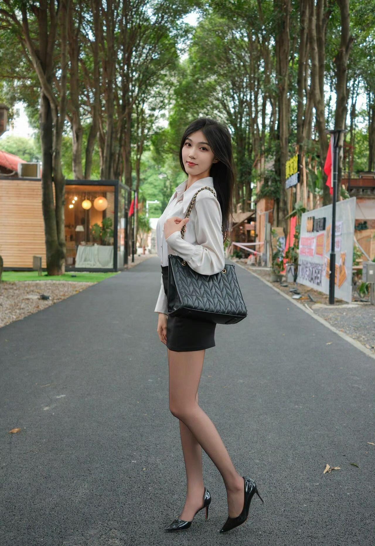这套穿搭是干练轻熟的白衬衫黑裙通勤风,把职场利落感和精致女人味融合得很得体。白色缎面衬衫自带优雅质感,简约版型显干练;搭配黑色短款包臀裙,注入轻熟感。 -搭配尖头高跟鞋强化轻熟气场,修饰腿部线条;菱格链条包提升轻奢质感,让通勤穿搭更显精致。充分展现穿着者干练轻熟的魅力。白衬衫裙穿搭 气质通勤白衬衫