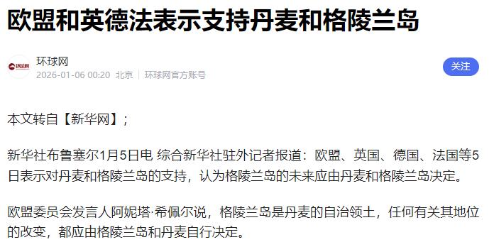 丹麦若是把格陵兰岛丢了,那么就剩下4.3万平方公里的领土了,将成为欧洲的一个小不点,从此变成欧洲路人甲,不再有什么关注度和话语权! 格陵兰岛足足有约216.6万平方公里,而丹麦本土面积仅4.3万平方公里左右,两者相差近50倍。一直以来,正是有了格陵兰岛的加持,丹麦才能以“领土大国”的姿态在欧洲拥有一席之地,在国际事务中也能拥有一定的话语权。 要是没了格陵兰岛,丹麦的领土面积在欧洲只能排到中下游,和卢森堡、比利时等小国差不多,再想在国际上发出有力声音,恐怕就是痴人说梦了。 而美国对格陵兰岛的野心可不是一时兴起,而是蓄谋已久。自从2025年特朗普政府上任后,就多次扬言要得到格陵兰岛,甚至毫不避讳地说不排除动用军事力量的可能。 近期,白宫官员更是公然放话,称得到格陵兰岛是美国的国家安全优先事项,还列出了包括军事入侵、直接收购、投资拉拢格陵兰民众、签署所谓“自由联系协定”在内的多种夺取方案。 这种赤裸裸的威胁,让丹麦彻底看清了美国的霸权嘴脸,也坚定了丹麦绝不放手的决心。 面对美国的步步紧逼,丹麦没有丝毫退缩,反而展现出了强硬的态度。丹麦首相明确警告,要是美国敢对同为北约成员国的丹麦动武,整个北约组织和二战后建立的安全体系都将终结。 丹麦外交大臣也第一时间请求与美国国务卿会晤,希望澄清误解,同时表明丹麦的立场。更重要的是,丹麦已经把美国的行径视作国家威胁,积极联合周边国家寻求支持。 很快,丹麦的周边国家和欧洲多国就站了出来。 丹麦与芬兰、冰岛、挪威、瑞典等北欧五国外交部长共同发表联合声明,强调涉及丹麦和格陵兰岛的事务,只能由丹麦和格陵兰岛自己决定,任何外部势力都无权干涉。 法国、德国、英国等欧洲大国也纷纷表态,支持丹麦的立场,明确指出格陵兰岛的主权归属不容置喙,边界不能通过武力改变。 这些国家的声援,给了丹麦不小的底气,也让美国的霸权行径受到了更多制约。尽管我们总说“全场由欧公子买单”,这也一定程度上说明美国的霸权是刚需欧洲国家的,若真的跟整个欧洲闹翻了脸,后果还真不是美国能担得起的。 说到底,美国之所以对格陵兰岛有觊觎,是因为它的战略地位和资源价值太过重要。只要控制格陵兰岛就能更直接地介入北极地区,掌控北极航道,对俄罗斯形成威慑。 格陵兰岛还拥有丰富的稀土资源、石油和天然气,这些都是美国当前发展高科技产业和保障能源安全急需的资源。 美国的如意算盘,就是通过控制格陵兰岛,进一步巩固自己的全球霸权地位。 对于丹麦来说,这场博弈注定艰难。美国是北约的主导者,在军事和经济上都拥有绝对优势,不少人担心丹麦最终可能难以抗衡。但丹麦很清楚,一旦妥协,失去的不仅是格陵兰岛这块巨大的领土,更是国家的尊严和未来的发展空间。 目前,丹麦正和格陵兰自治政府紧密配合,一方面积极与美国沟通协商,另一方面继续联合欧洲各国凝聚共识,共同抵御美国的压力。 这场围绕格陵兰岛的较量,本质上是霸权主义与国家主权的对抗。