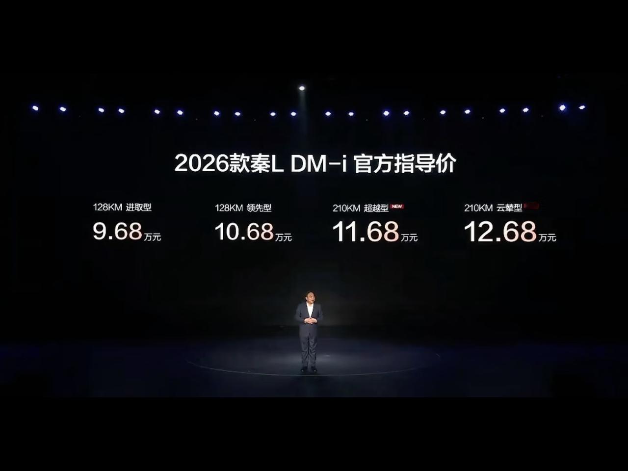 比亚迪这也太狠了[灵光一闪]2026款秦L DMi来了,200KM纯电续航才11.68万? 2026款秦L DM-i 210KM超越型,搭载25.28kWh大容量电池,CLTC纯电续航直达210km,综合续航突破2110km,搭配2.79L/100km超低馈电油耗,彻底告别补能与油耗焦虑。 外观延续“新国潮龙颜美学”,新增松烟绿、墨竹青、星河米三款质感配色,与未央灰等原有三色组成6款选择,潮流属性拉满。内饰升级直击需求,210KM云辇型标配冷暖冰箱与抬头显示,日常出行更具舒适感。 动力上,1.5L发动机(74kW/126N·m)搭配120kW或160kW电驱,动力输出随心切换。顶配车型搭载云辇-C智能阻尼系统,颠簸路面稳如平地;同级罕见的TBC高速爆胎稳行系统,为安全保驾护航,再加上天神之眼C智驾辅助,越级打汉DM i都没问题吧[笑哭]