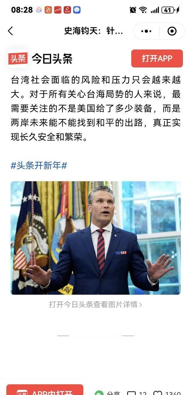 针对台湾问题,摊牌了!美国国防部已经表态了!美国国防部对台操作的核心,本质是把台湾地区当成军工复合体的提款机和牵制中国的棋子,所谓“非对称作战”转型,不过是让台湾地区花大价钱买些实用性有限的小型武器,还得绑定美国战车当炮灰。美国对台湾最直接的算计,就是靠卖武器赚钱,2025年底,美国批准了一笔111亿美元的对台军售。 2025年12月17日,美国国防安全合作局公布了八项对台军售案,总额达到111亿美元左右,这是美国历史上单笔最大规模的对台武器销售。清单里主要包括82套海马斯火箭系统、420枚陆军战术导弹、60门M109A7自走炮,还有标枪和陶式反坦克导弹、Altius系列无人机,以及一些军用软件和零配件。这些装备大多是便携式或机动性强的类型,射程基本在300公里以内,表面上看是帮台湾地区搞不对称防御,实际上就是推销一些库存货,让台湾地区多掏钱买单。 美国这边一直强调,这笔交易符合他们的国家利益,能帮台湾地区现代化军队,保持防御能力。但说白了,美国军工企业才是最大受益者,像洛克希德·马丁、雷神这些公司,直接从这笔订单里分走大头利润。台湾地区防务部门赶紧表态感谢,说这能提升自卫能力,可岛内很多人不买账,觉得这些武器交付慢、价格高,还得靠美国维护,等于把钱白白送出去。台湾地区本来经济压力就不小,防务开支已经占GDP比例不低,现在又追加预算买这些,民生方面肯定受影响。 这事一出,中国外交部和国防部马上回应,强烈反对美方售武行为,指出这严重违反一个中国原则,损害中国主权和安全利益,向“台独”势力发出错误信号。中方明确表示,美方这么做只会害人害己,任何用台湾地区遏制中国的企图都不会成功。中国人民解放军继续加强台海周边常态化巡逻,维护国家主权。 美国推动台湾地区转向不对称作战,说是让岛内用小型武器拖延时间,但实际效果有限。两岸军力对比早就变了,堆再多单兵导弹也改变不了大局。台湾地区民众越来越清楚,外部势力卖武器就是为了赚钱,顺便把风险转嫁过来。靠买武器求安全是靠不住的,和平发展才是正道,两岸同胞血脉相连,统一是大势所趋,谁也挡不住。 这笔军售还暴露了美国对台政策的算计,把台湾地区当棋子用,榨取财政的同时增加中国统一成本。但历史经验证明,这种干涉注定失败。中国反制措施精准有力,包括对涉售企业实施制裁,冻结资产,限制交易。这些步骤让美国军工企业做生意没那么容易。台海稳定靠的是两岸自己努力,不是外部卖枪弄棒。 岛内有些人还幻想靠美国撑腰,但特朗普政府一贯美国优先,卖武器时热情,真正有事时会不会出兵,谁心里都没底。台湾地区年轻人面对高房价、低薪水,再加上不断涨的防务负担,压力越来越大。钱花在买武器上,本来可以用来改善教育、医疗,现在却成了军火商的利润。 总的来说,这笔111亿美元军售就是美国摊牌的一步,底牌亮得清清楚楚。台湾地区被推到前线,花大钱买有限效用的装备,最终苦的还是普通老百姓。两岸关系走和平统一道路,才符合大家利益,外部势力再怎么折腾,也改变不了中国完全统一的历史潮流。