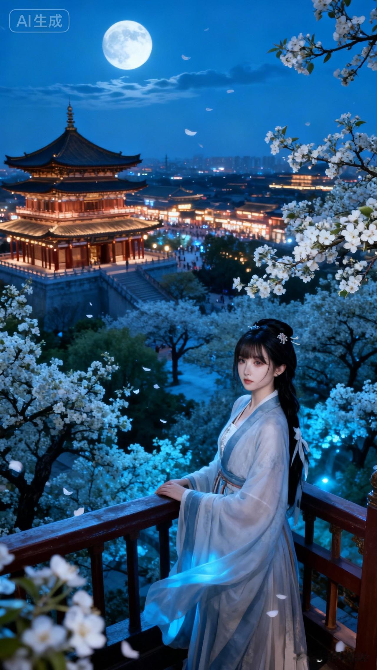 月光下的古风少女,梦回大唐!国风古代美人 月下汉服美人 大唐古风姑娘 古风夜景