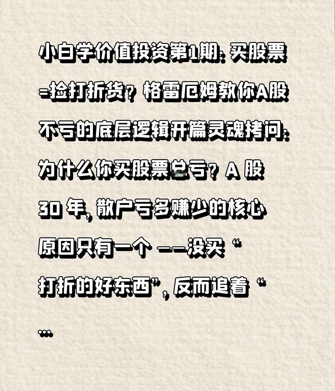 小白学价值投资第1期:买股票=捡打折货?格雷厄姆教你A股不亏的底层逻辑 开篇灵