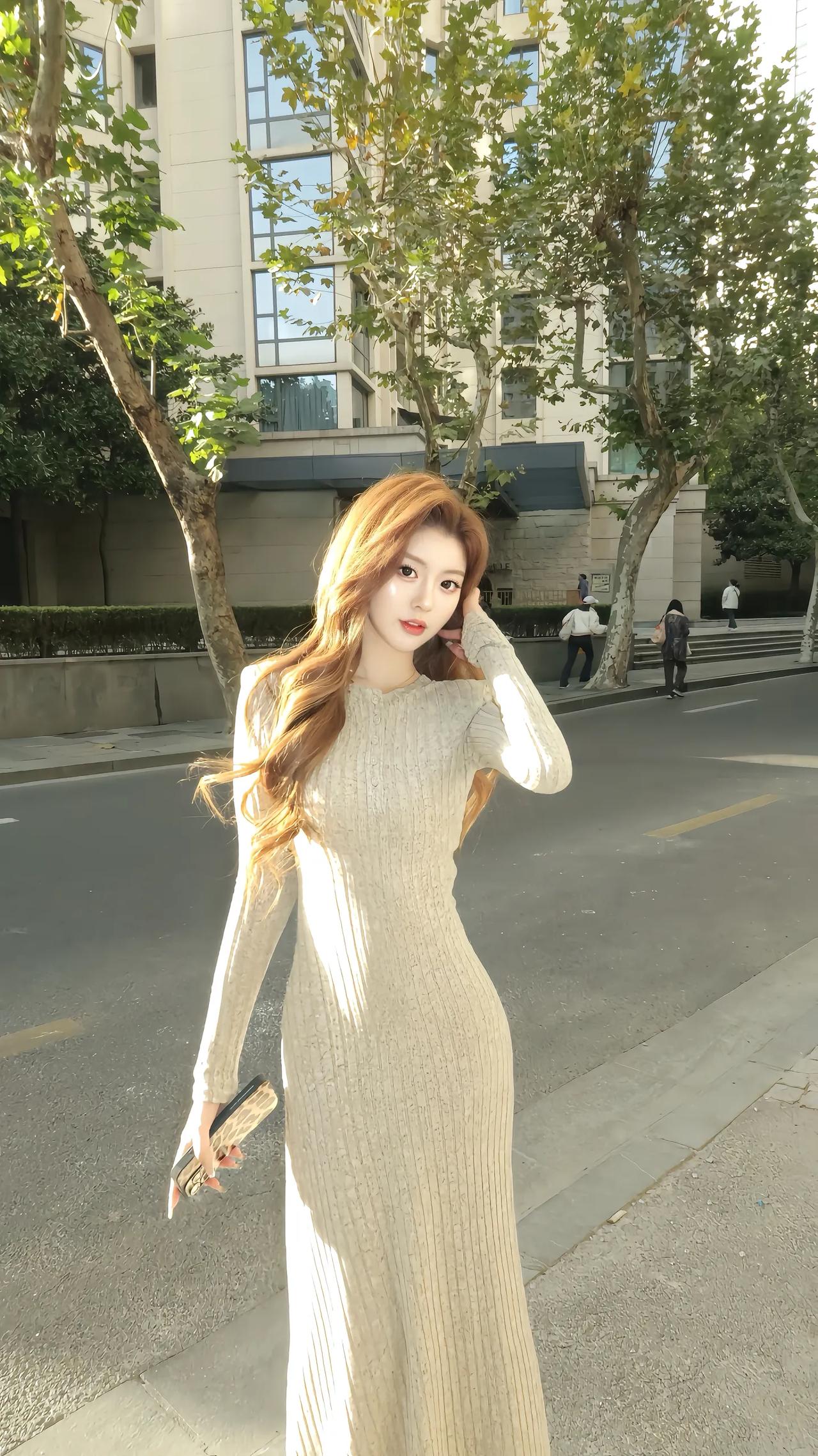 这件浅米杏色针织衫一穿直接白到发光✨