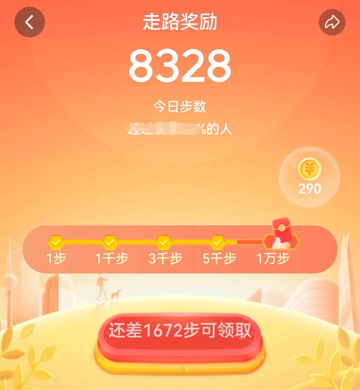 今日运动打卡上下班走了个来回,居然没有走够1万步。只有8328步。