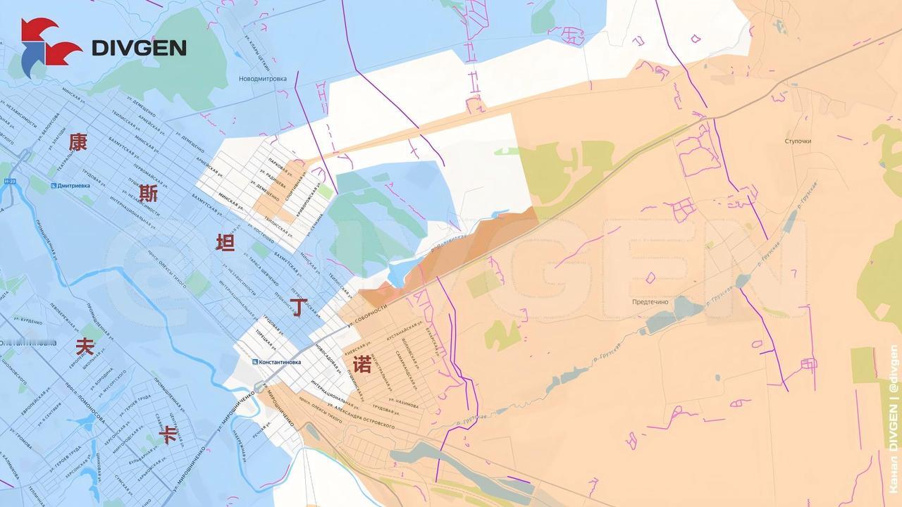 康斯坦丁诺夫卡,南部集群突击队已进入东南角的“化学家”园艺合作社,并且伸出一条触角,要夹击这个农场。可见当地乌军兵力严重不足 ,这么长的触角都没有切断去。