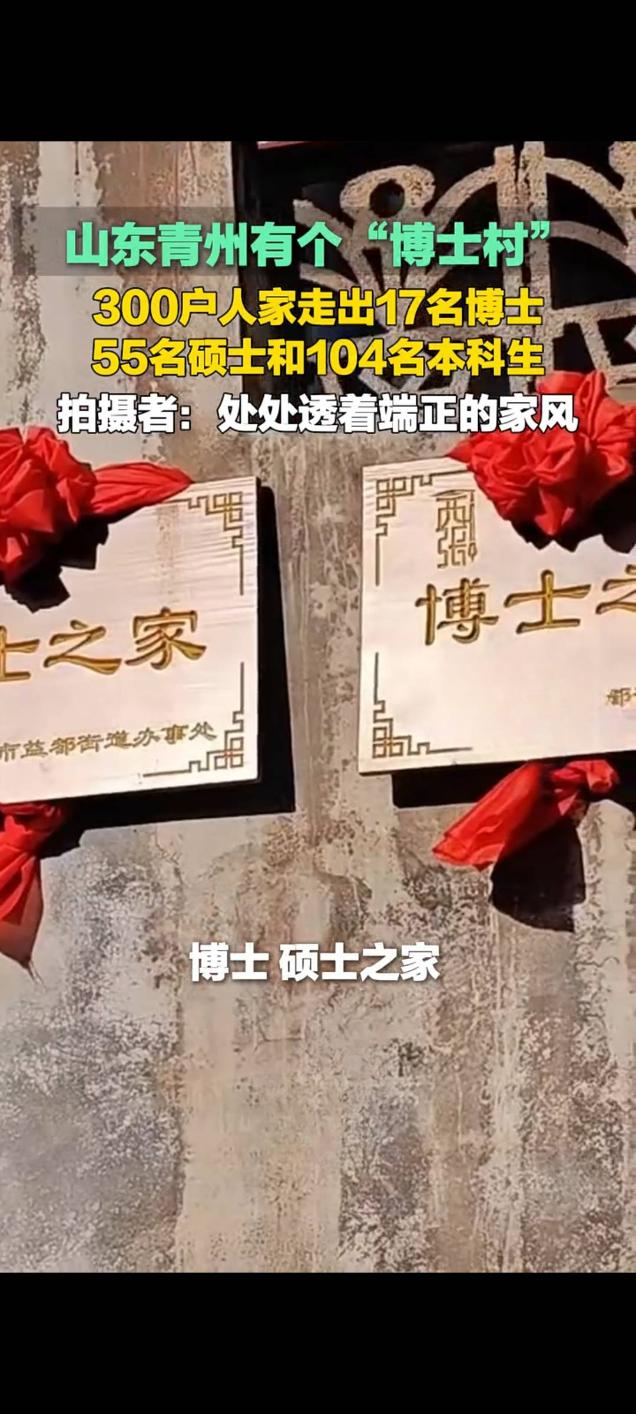 山东青州"博士村"出圈:300户人家走出176名高材生 近日,山东青州一个普通村落因“学霸扎堆”引发全网关注,这个被网友亲切称为“博士村”的村庄,仅300户人家就走出了17名博士、55名硕士和104名本科生,累计176名高材生的亮眼成绩,让这座小村庄成为众人热议的焦点。相关短视频在快手平台发布后,迅速收获3.3万次播放,网友纷纷为这个“书香村落”点赞。 据了解,该村虽规模不大,但重教兴学的传统由来已久。村里老一辈常说“知识能改变命运”,这种理念深深扎根在村民心中。无论是家境宽裕还是普通的家庭,都把子女教育放在首位,邻里之间常交流育儿心得,形成了互帮互助、比学赶超的良好氛围。 从村里走出的学子们,遍布国内外知名高校、科研院所及各行各业,他们中有科研骨干、高校教授,也有企业精英。不少学子表示,家乡的崇文风气是自己求学路上的动力源泉,如今虽身在异乡,但始终感念家乡的培育之恩,常以实际行动反哺家乡发展。 “博士村”的佳话,不仅是一个村庄的荣耀,更彰显了重视教育、深耕不辍的力量。网友留言称,这个小村庄用实际成绩证明,平凡之地也能因书香而不凡,为更多乡村树立了重视教育的好榜样。齐鲁进士村 重视教育重视教育 寒门出学子