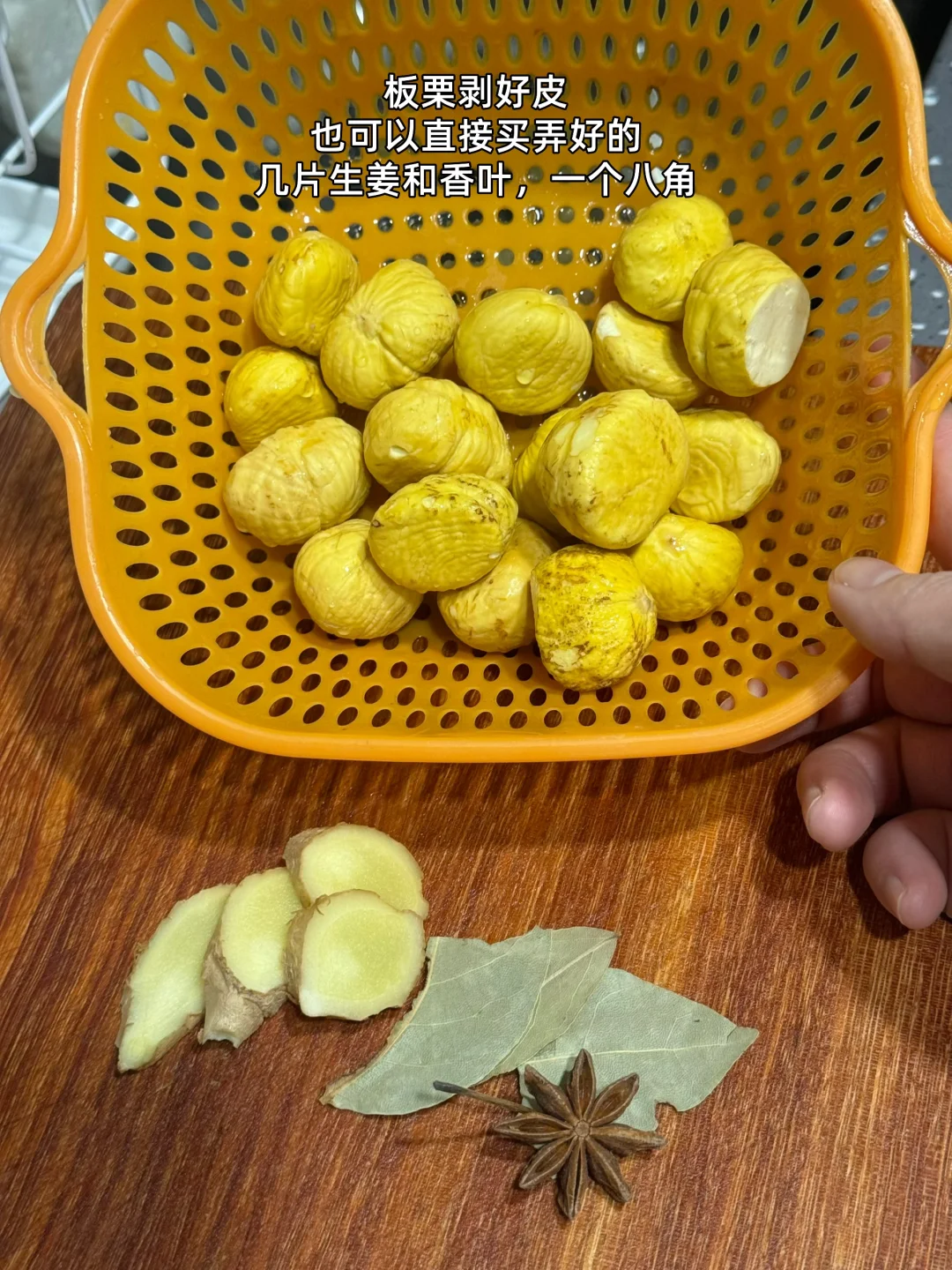 2. 板栗剥好皮也可以直接买弄好的几片生姜和香叶,一个八角