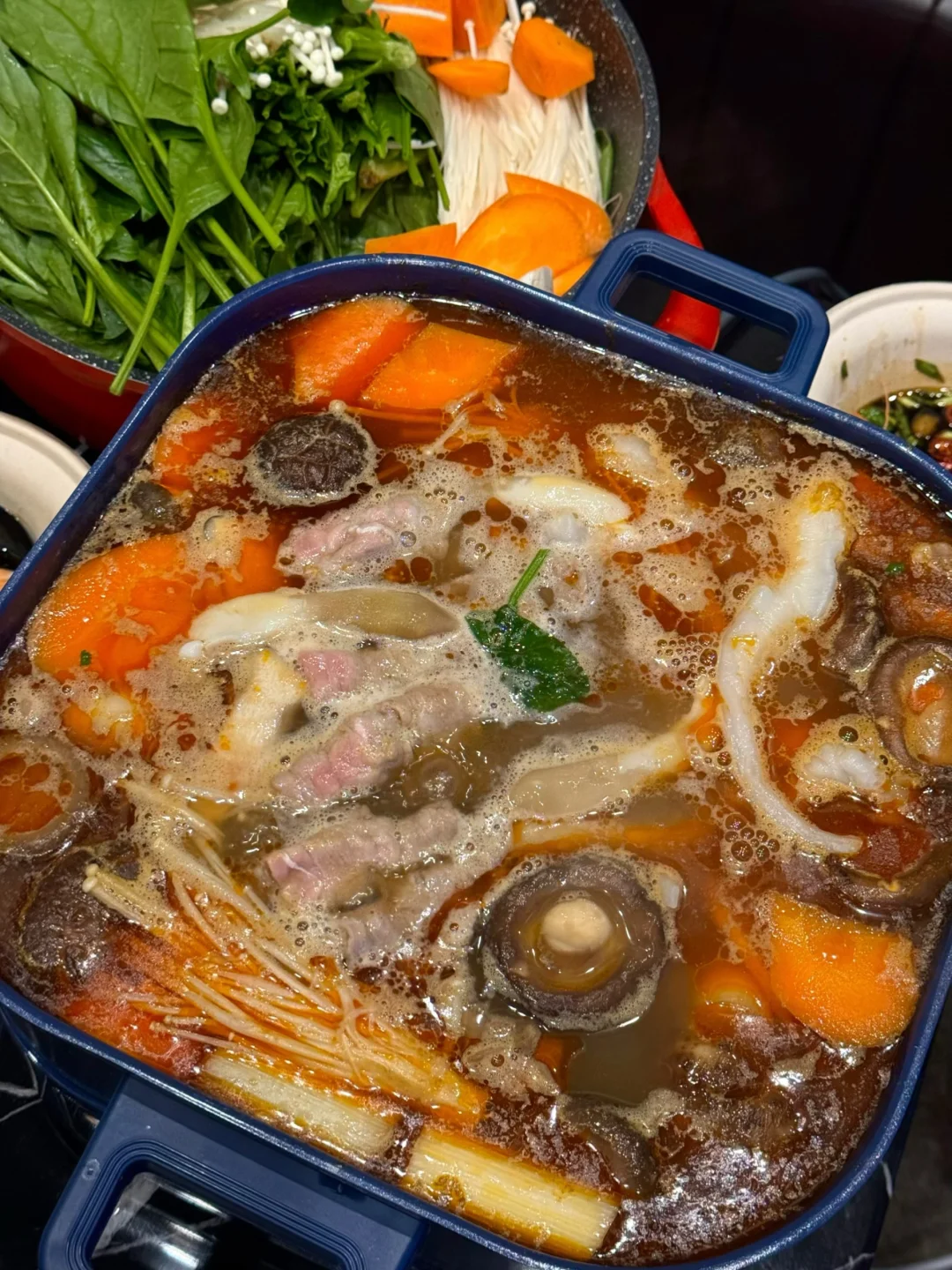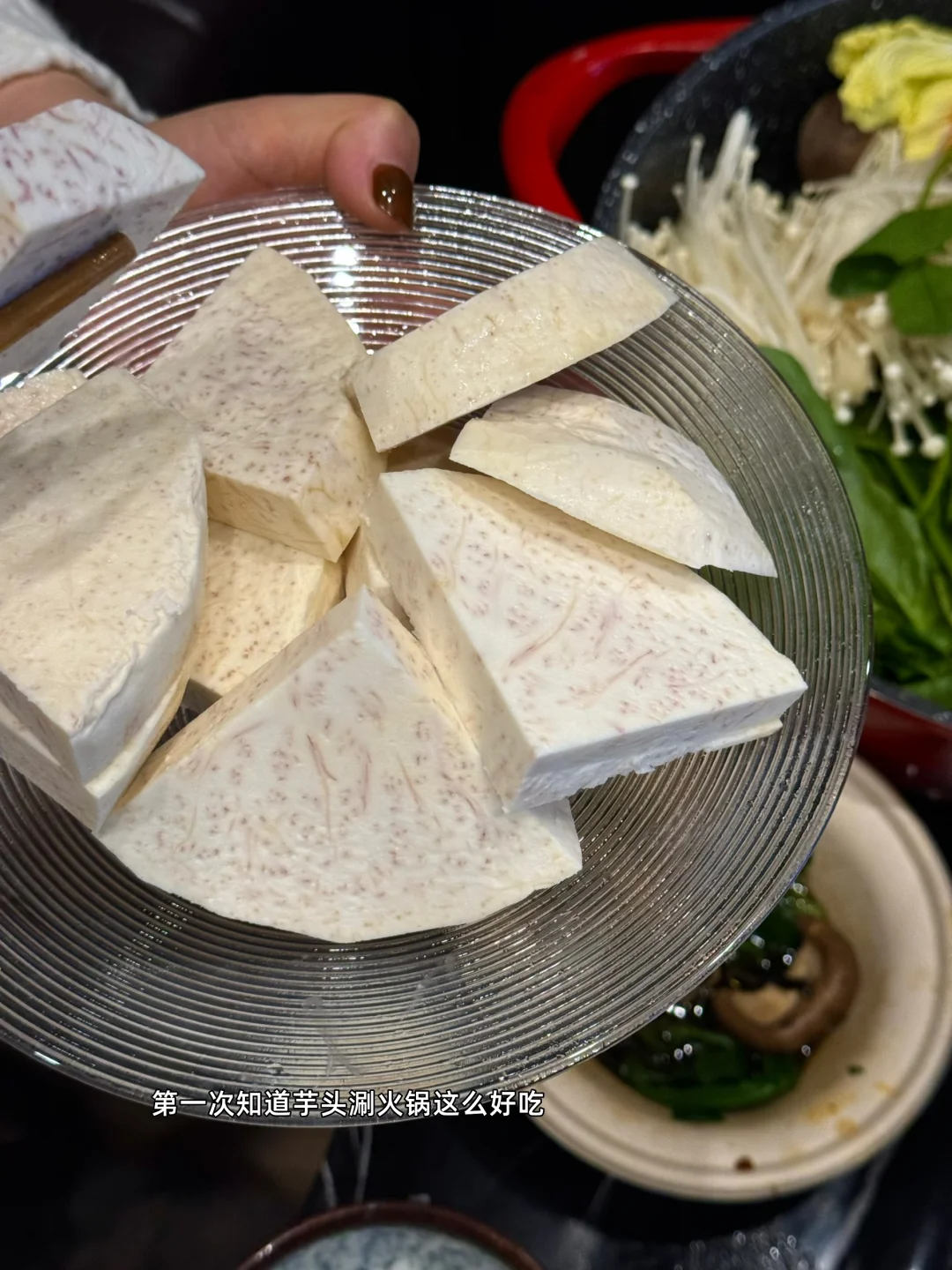 新的一年第一天吃个火锅烤肉,热气腾腾的一年又开始了[偷笑R][偷笑R]人生第一次知道大的芋头涮火锅这么好吃😋