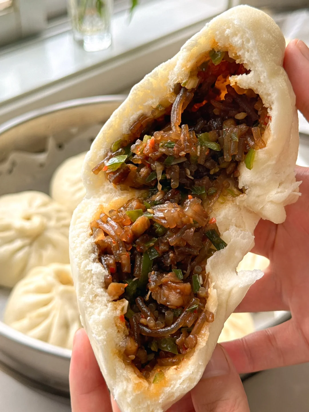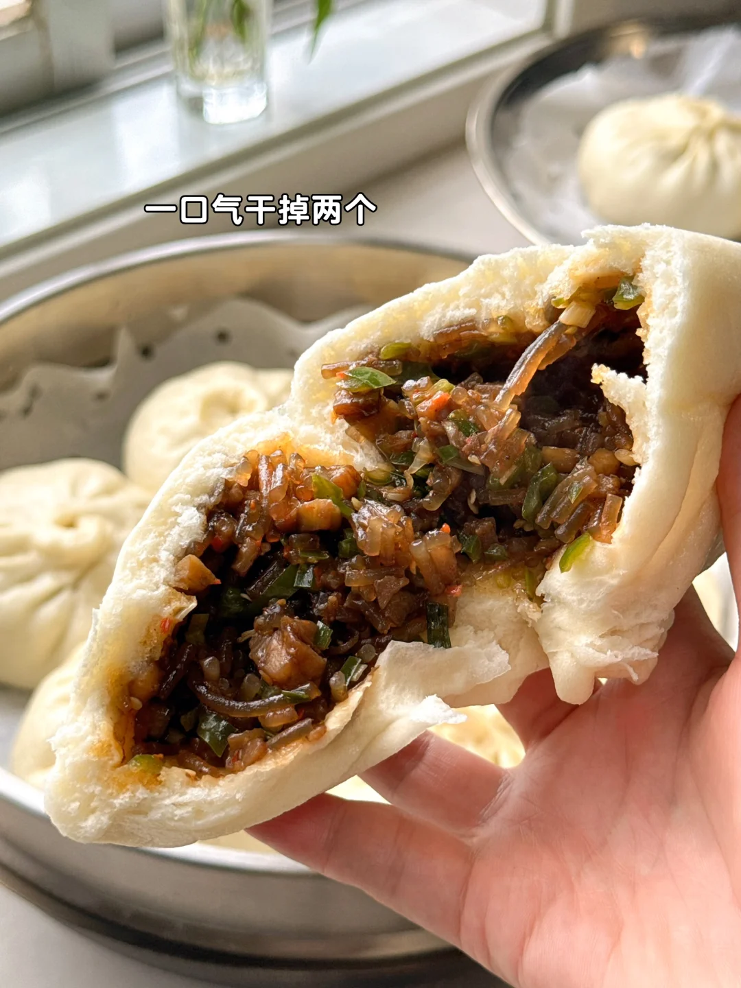 8. 擀成中间厚边缘薄的面片开始包包子咯
