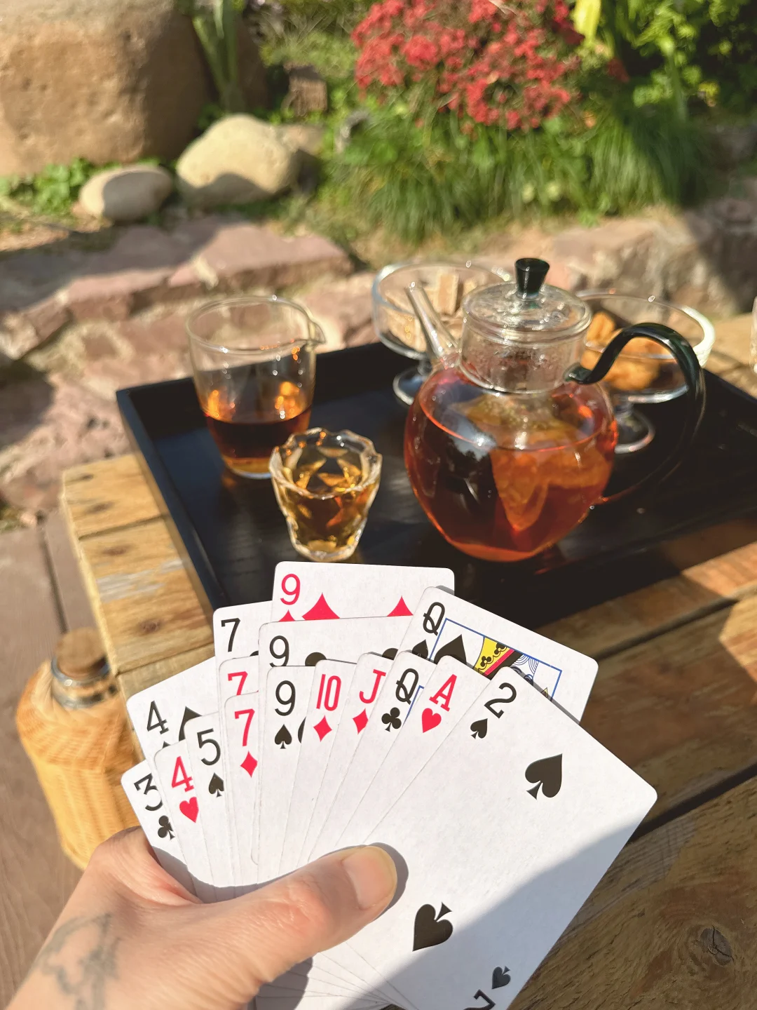 苏州的温度真的是不稳定,难得的周末有太阳 关键是花园里吃火锅这个诱惑我很久了,没喝咖啡点了茶先玩会儿扑克在直接晚餐 建议你们早一点去店附近有停车的地方晚了就只能停下面路边了 幸运的事昨天没有风坐在外面不觉得冷,果然室外的火锅别有一番滋味[斜眼R][斜眼R]
