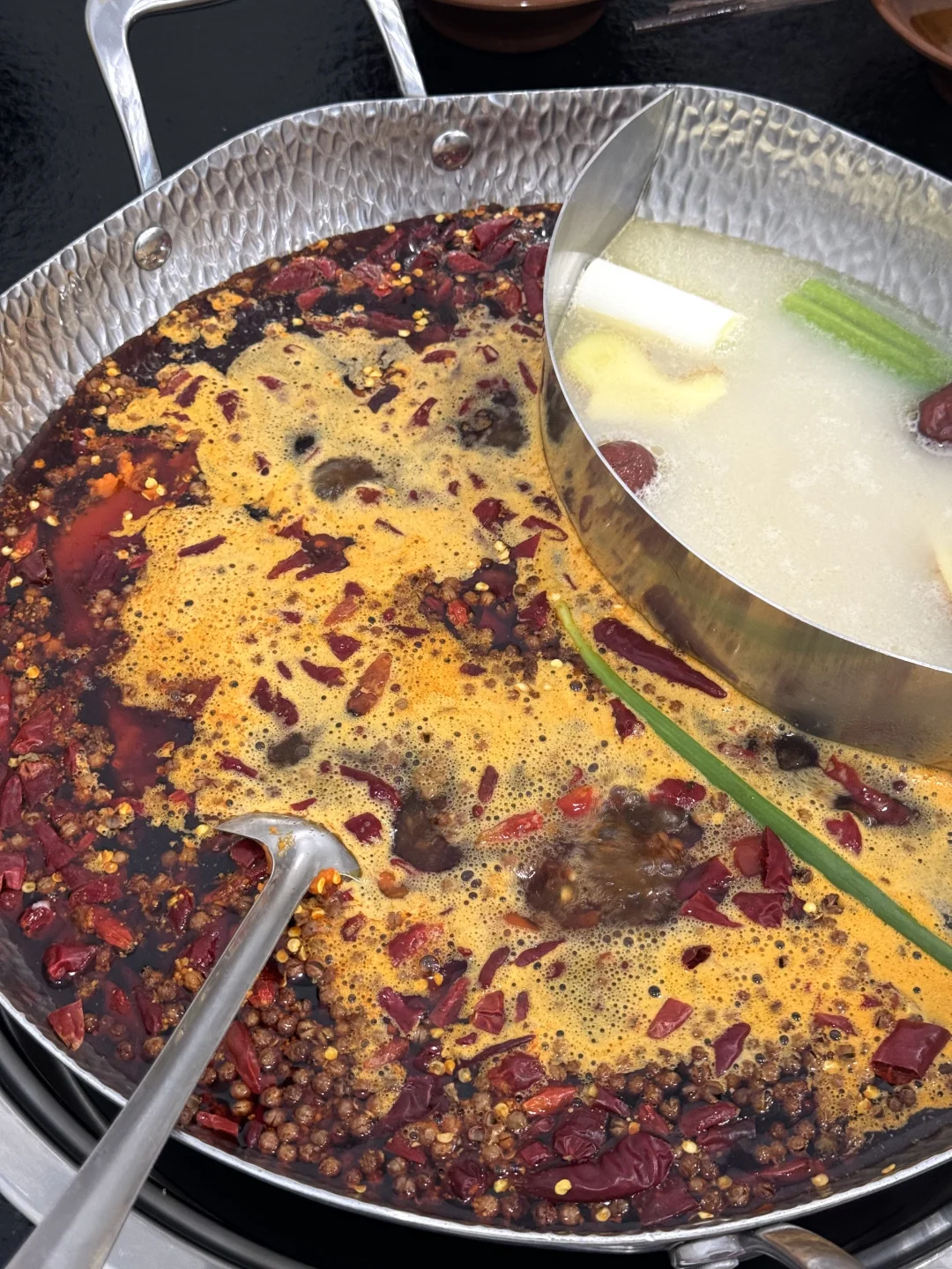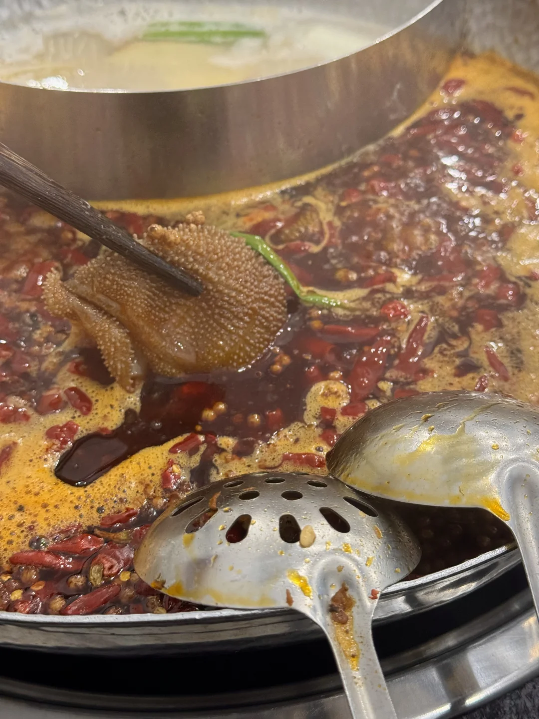 最近吃过很香很麻很辣很爽的一顿火锅了 哈哈作为湖北人我感觉我已经很能吃辣了,她们家底料是自己炒的,我还特意选了加麻加辣的[捂脸R][捂脸R]到后面就感觉嘴巴可以吃胃不太行了 豆腐有点柴火豆腐的感觉很容易入味儿!有人和我一样喜欢吃猪腰子的吗[笑哭R][斜眼R]