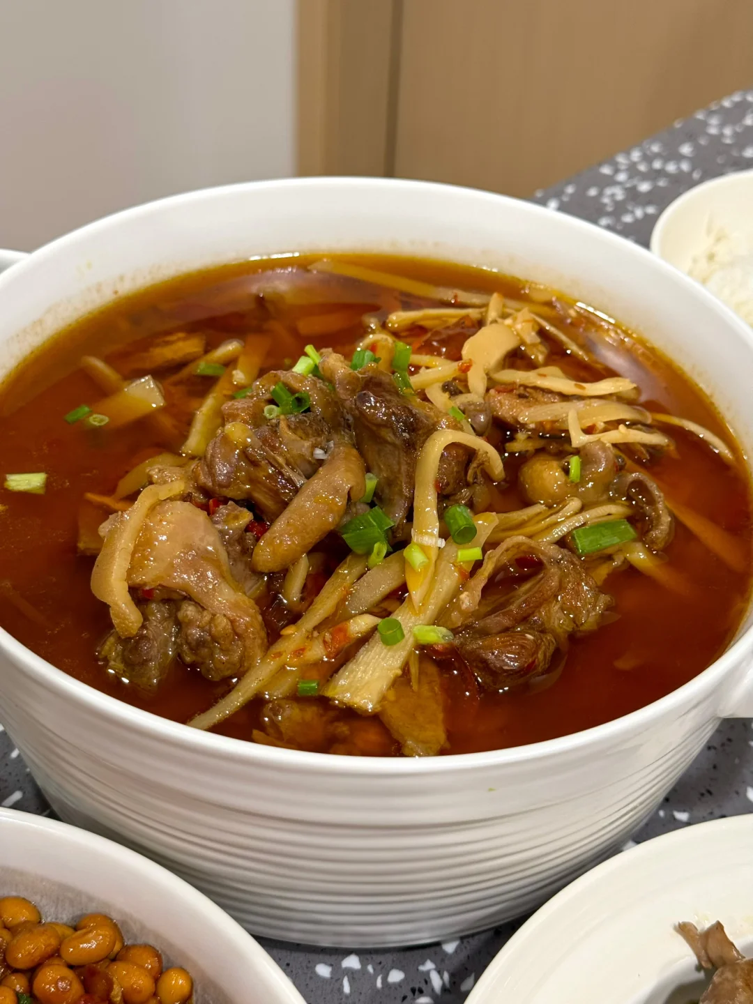 闺蜜很久没有来家里吃饭了,刚好今天有空也懒得出去买菜,就冰箱里的食材拿出来简单做了一下,顺便分享一下猪脚烧黄豆的菜谱给你们吧!