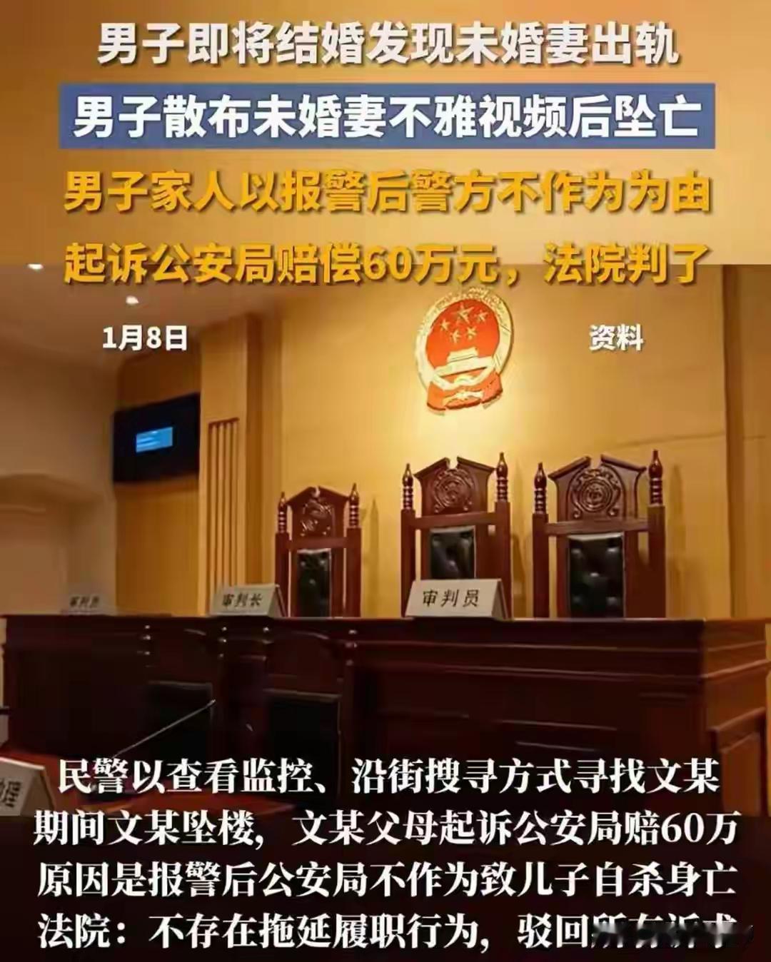 四川南充教师宿舍惊魂夜:相恋八年未婚妻出轨,男子怒发不雅视频后坠亡,父母索赔60万告警方被驳回! 当爱情的面纱被残酷撕下,露出的竟是背叛的獠牙。四川南充,一对相恋八年、即将在九月步入婚姻殿堂的情侣,他们的故事没有等来婚礼的钟声,却以一场震惊网络的悲剧戛然而止。2022年7月10日那个闷热的下午,成了两个家庭永恒的噩梦。 那天下午四点,文某满心期待地从成都返回他与未婚妻李某共同居住的教师宿舍。推开门的一刹那,映入眼帘的不是温馨的守候,而是未婚妻与另一男子赵某举止亲密的画面。八年感情筑起的高塔,在那一刻轰然倒塌。激烈的拉扯,无声的崩溃,文某最终取回自己赠送的电脑和首饰,带着一颗破碎的心离开。 然而,离开不是结束,而是更疯狂报复的开始。被愤怒和绝望吞噬的文某,向李某发出了冰冷的威胁——要公开两人交往期间拍摄的私密视频。李某惊恐报警,而文某也向家人流露出轻生的念头,其弟弟心急如焚地拨打110求助。一场与时间的赛跑,在夜幕降临的南充街头紧张展开。 晚上七点,报复的火焰还是点燃了。李某的不雅视频被发送到她所在的工作群以及多个网络贴吧。尽管她在同事提醒下慌忙撤回,但数字时代的痕迹,岂是轻轻一点就能完全抹去?她的名誉与社会关系,在这一刻遭到了重创。而彼时,民警们正争分夺秒地调取监控,穿梭在街巷中寻找那个徘徊在生死边缘的年轻人。 晚上九点,最坏的消息传来。文某从高处坠下,生命永远定格在了那个夜晚。120的监测冰冷地确认了死亡时间。一个原本即将开启新生活的年轻人,用最决绝的方式,为自己八年的感情和目睹的背叛画上了血色的句号。留下的是两鬓斑白的父母,和一个再也无法回答的“为什么”。 悲剧并未随着生命的消逝而落幕。承受丧子之痛的父母,将南充市公安局高坪区分局告上了法庭。他们认为,警方在接到其子可能轻生的报警后,未能有效阻止悲剧发生,存在“不作为”,并据此索赔六十万元。这起诉讼,将本就复杂的悲剧,引向了关于公权力责任边界的深刻讨论。 法院的判决最终为这场风波画上了法律的句号。经过审理,法院认为,接警民警在事发后采取了查看监控、沿街搜寻等及时且合理的措施,已经积极履行了法定职责。文某的坠亡与警方的履职行为之间,不存在法律上的直接因果关系。因此,法院依法驳回了文某父母的所有诉讼请求。这一判决,厘清了情感悲剧中个人责任与公共责任的界限。 回望整个事件,我们看到的是一出因情感背叛而引发的多重悲剧。李某在道德上的背叛,无疑是这场风暴的起源。然而,文某在遭受巨大打击后,选择以违法传播他人隐私的方式进行报复,则是将彼此推向了更深的深渊。他用一种毁灭性的方式惩罚对方,同时也彻底摧毁了自己。法律保护公民隐私权,任何形式的泄露和传播都将面临严惩。 更令人扼腕的是,文某最终选择用结束生命来应对背叛。这背后反映出的,或许不仅仅是一段感情的破裂,更是个体在极端情绪下心理防线的崩溃,以及对生命价值的认知偏差。他的离去,让父母承受了白发人送黑发人的无尽悲痛,而那个背叛他的未婚妻,余生也必将活在巨大的舆论阴影与内心谴责之中。 这场三败俱伤的悲剧,像一面冰冷的镜子,照见了人性在情感失控时的幽暗与脆弱。它警示我们,在亲密关系中,尊重与忠诚是基石,而隐私则是不可触碰的底线。当感情走到尽头,理性与法律应当成为最后的护栏,报复的火焰只会焚烧所有相关的人。珍惜生命,尊重他人,守住法律的边界,或许才是对自己和他人最大的负责。愿这样的悲剧,不再重演。 (来源:综合自中国裁判文书网、深圳新闻网、大河报、周兆成律师账号及相关网络平台热议内容) 情感悲剧 隐私边界