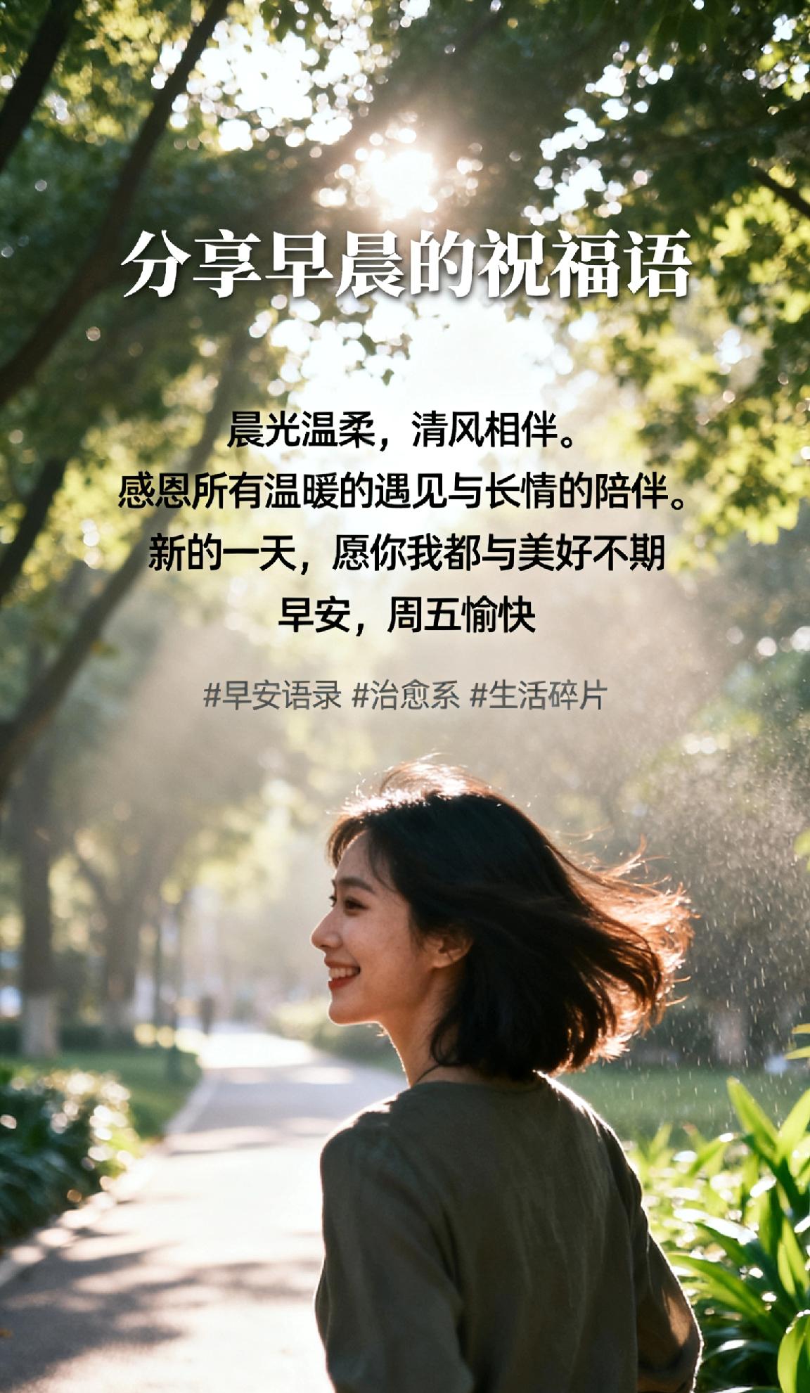 晨光温柔,清风相伴。 感恩所有温暖的遇见与长情的陪伴。 新的一天,愿你我都与美好不期而遇,把平凡的日子过得闪闪发光。✨ 早安,周五愉快! 早安语录 治愈系
